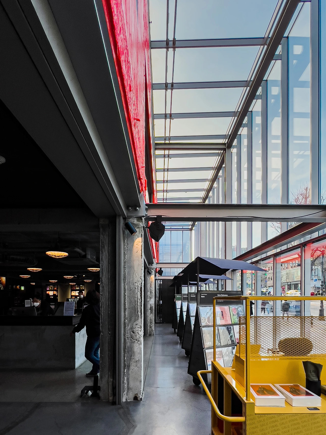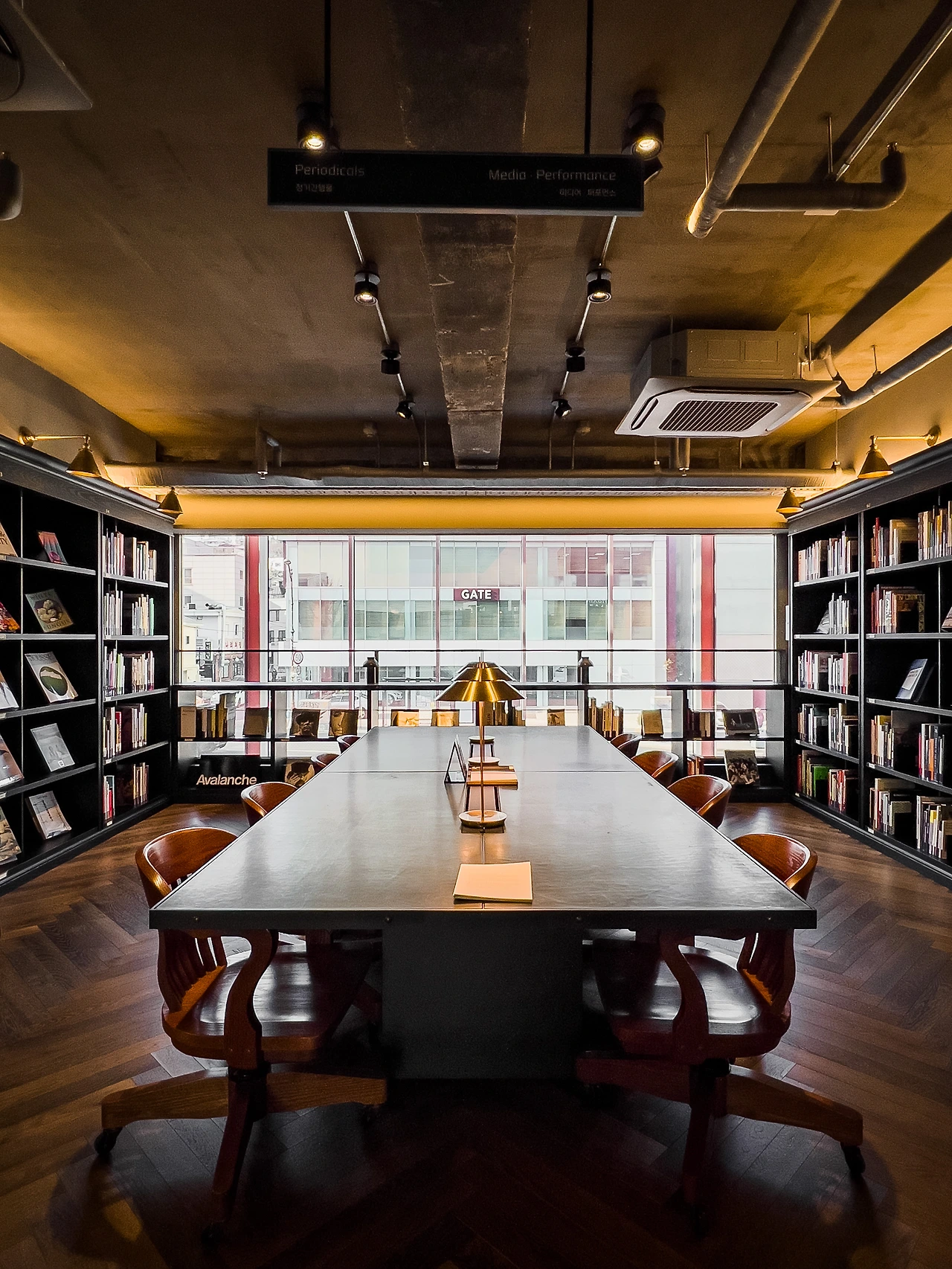 LP 샵에서 흘러나오는 음악은 건물 전면부 유리로 마감된 아트리움을 타고 올라간다. 일상과 음악이 하나 되어 허물어진 경계속에서 책에 집중하고, 여유를 만끽한다.