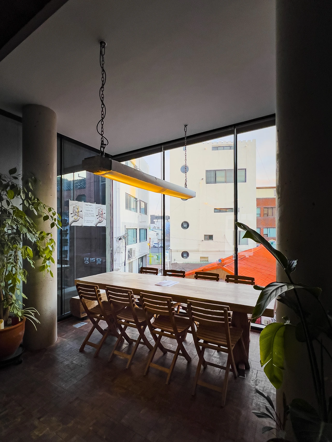 잘 지어진 건물이 들어서면서 쇠퇴한 도시를 되살아나게 한 사례를 여럿 봐왔다. 녹슨에서만 경험할 수 오감 자극의 공간과 윤슬을 만들어 노후화되어 어두워진 동네를 환하게 밝히는 외피는 사람들을 끌어모으는 장치다. 동네에 비해 작은 카페지만, 그 힘은 엄청나다. 녹슨이 다시 북적한 젊음의 거리를 되찾아줄 시발점이 되었으면 한다.