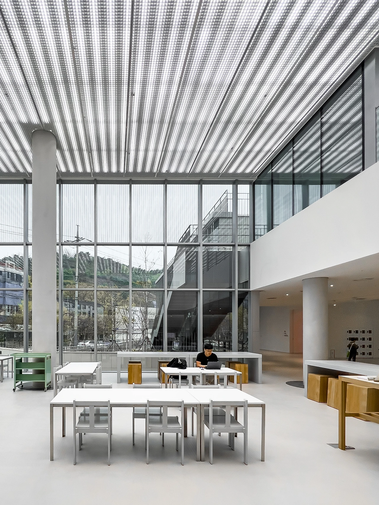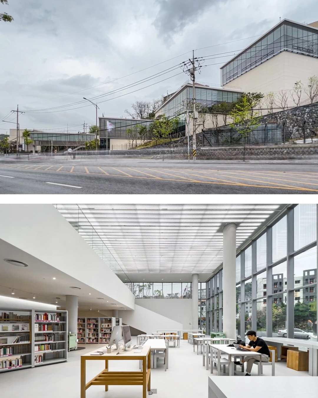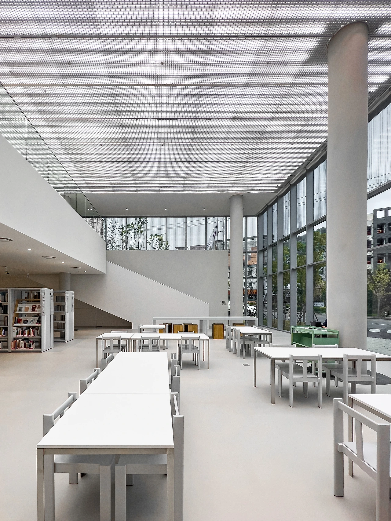 분절된 건물의 각 덩어리는 점층적으로 후퇴하며 쌓아 올라간다. 늘어진 동선에 맞춰 나타나는 다양한 공간은 공간을 자연스레 이어준다. 건물 덩어리가 교차하는 지점은 계단형 세미나실 또는 열람실이 배치되어 각 공간을 연결하는 동시에 층고가 높아져 빛을 내부로 더 많이 들여 그곳을 강조한다.