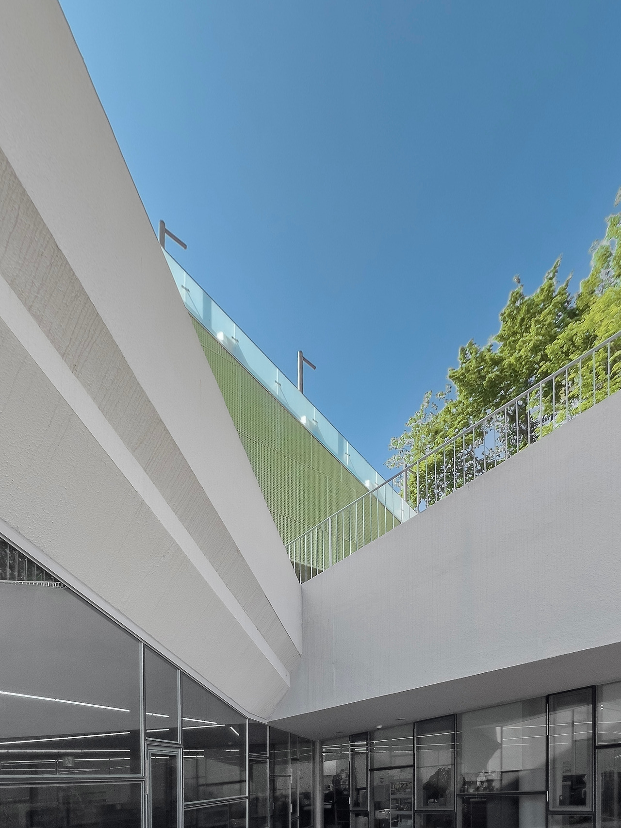 산을 향해 수렴하는 건물은 계단형 광장을 만들어 산을 바라보게 하고, 반대편은 날카롭게 뻗어간다. 역동적인 힘을 가지는 건물은 길은 같지만, 매번 새롭게 그 길을 바라보며 앞으로 나가는 시 속 청년의 마음과 같다.