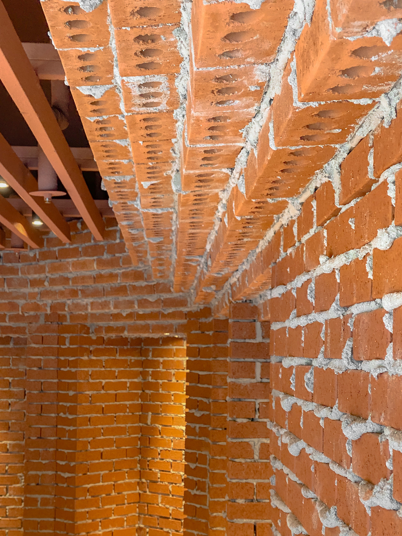 분명 같은 재료임에도 180도 다른 느낌을 주는 건 바로 벽돌에 바르는 모르타르 때문이다. 이곳은 모르타르를 거칠게, 두껍게 발라 벽돌 속이 보이도록 마감처리를 했다. 그래서 꼬또에서는 벽에 타일을 붙인 듯 너무나 깔끔하지만, 이곳은 정말 사람이 일일이 쌓아 올렸다는 느낌이 듦과 동시에 섬세하고 아기자기함보다 시원한 느낌까지 든다.
