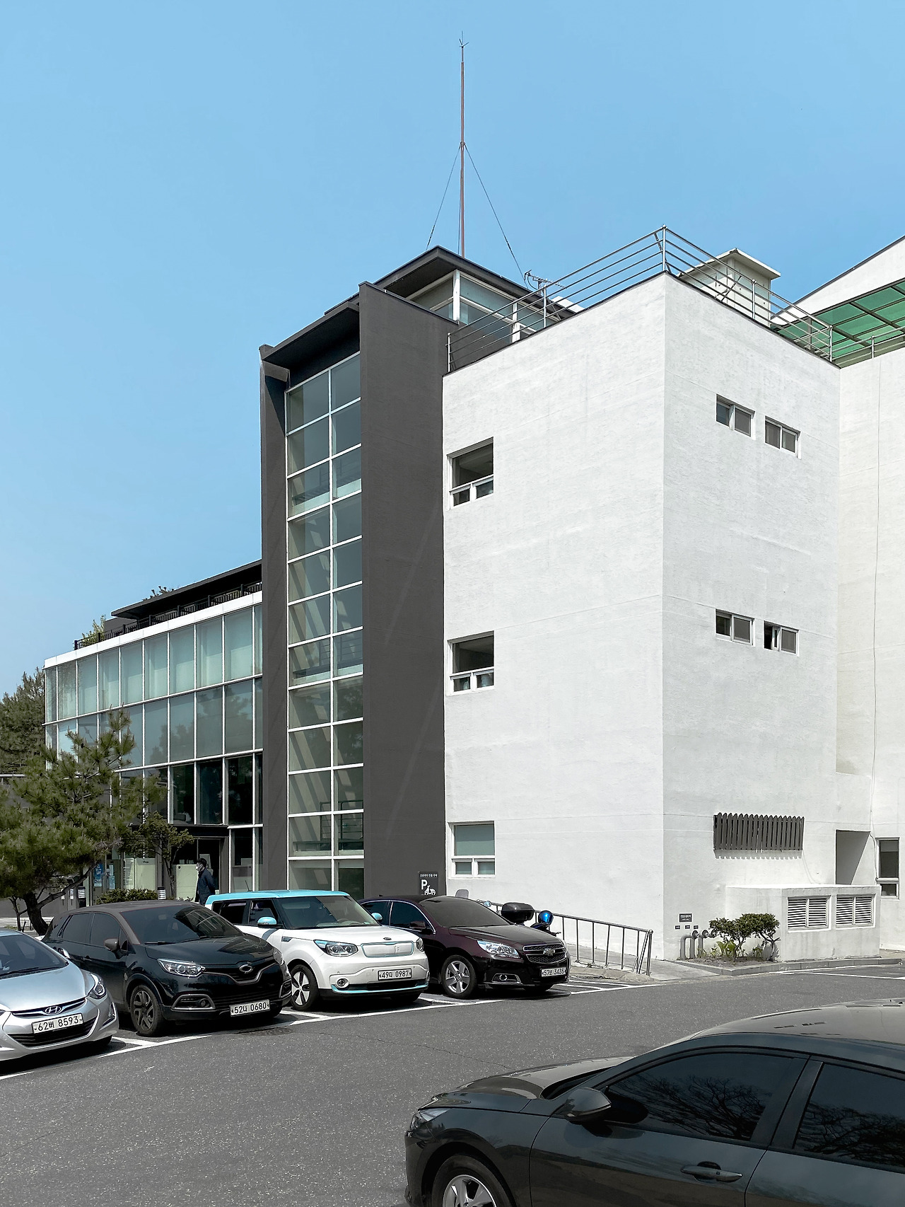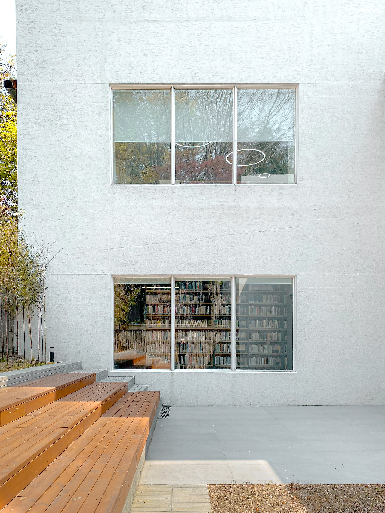 건물 뒤는 산이 있어 나무가 공간의 배경이 되고 한층 시원하고 차분하게 공간을 감싼다.