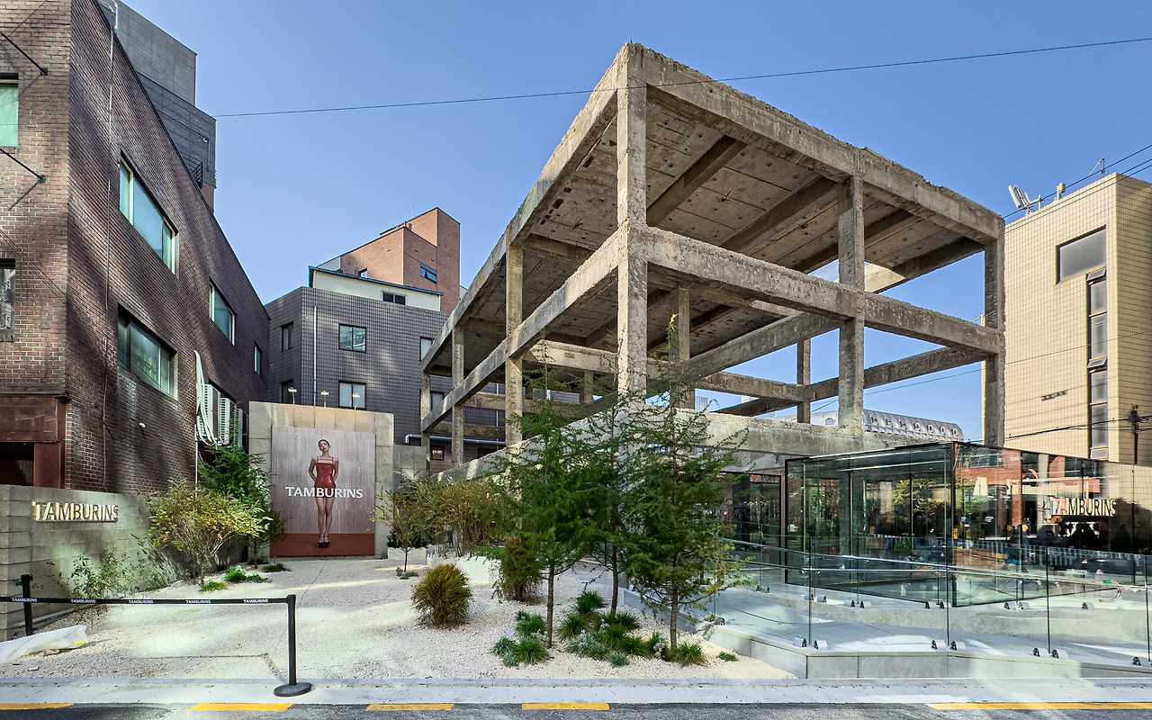 상업 건물의 면적은 임대료와 직결되기 때문에 정해진 용적률 안에서 최대한 많은 면적을 확보해야 한다. 임대하지 않더라도 건축 면적을 처음부터 포기한다는 건 범죄에 가깝다. 다만, 이들의 행동을 신축으로 보기보다 팝업스토어의 진화 버전으로 바라본다면 이야기는 조금 달라진다. 골조만 남기고 나머지는 철거하며 지하층만 리모델링하여 사용하는 방식은 석 달을 넘기지 않은 공사 기간 덕에 자재값과 인건비를 아낄 수 있었다.