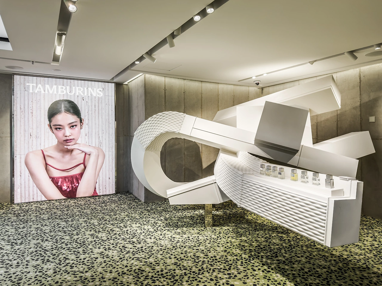 ‘탬버린즈 성수’는 위기를 기회로 바꾸는 다른 방법을 제시한다. ’탬버린즈(tamburins)‘는 ‘아이아이컴바인드’에서 전개하는 코스매틱 브랜드로 누데이크, 젠틀몬스터와 궤를 같이한다. 키네틱 아트로 소비자를 끌어들이고 아트를 방불케 하는 제품 디자인을 통해 소비자의 지갑을 열게 한다. 이번에는 공간을 통해 사람들의 머릿속에 강렬한 인상을 남긴다.