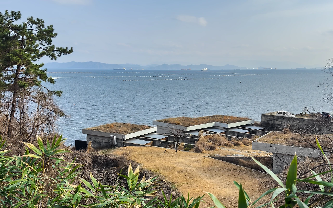 이러한 관계는 여행객에게 특별한 경험으로 다가온다. 거제도에서 다리를 하나 더 건너 가조도 깊숙한 곳까지 들어가야 하는 수고로움에 대한 보상이다. 침실에 있든, 화장실에 있던 여유로운 틈 사이로 무의식에 자연이 덮쳐온다. 지형을 최대한 활용하여 더불어 지내고 함께 사는 건축이기에 자신이 딛고 있는 땅에 대한 감각을 일깨운다. 코, 귀, 피부, 온몸으로 자연을 느낀다. 이름 말미에 ‘집’이라는 단어가 붙은 것도 숙박 시설 이상의 의미를 지녔기 때문이다.