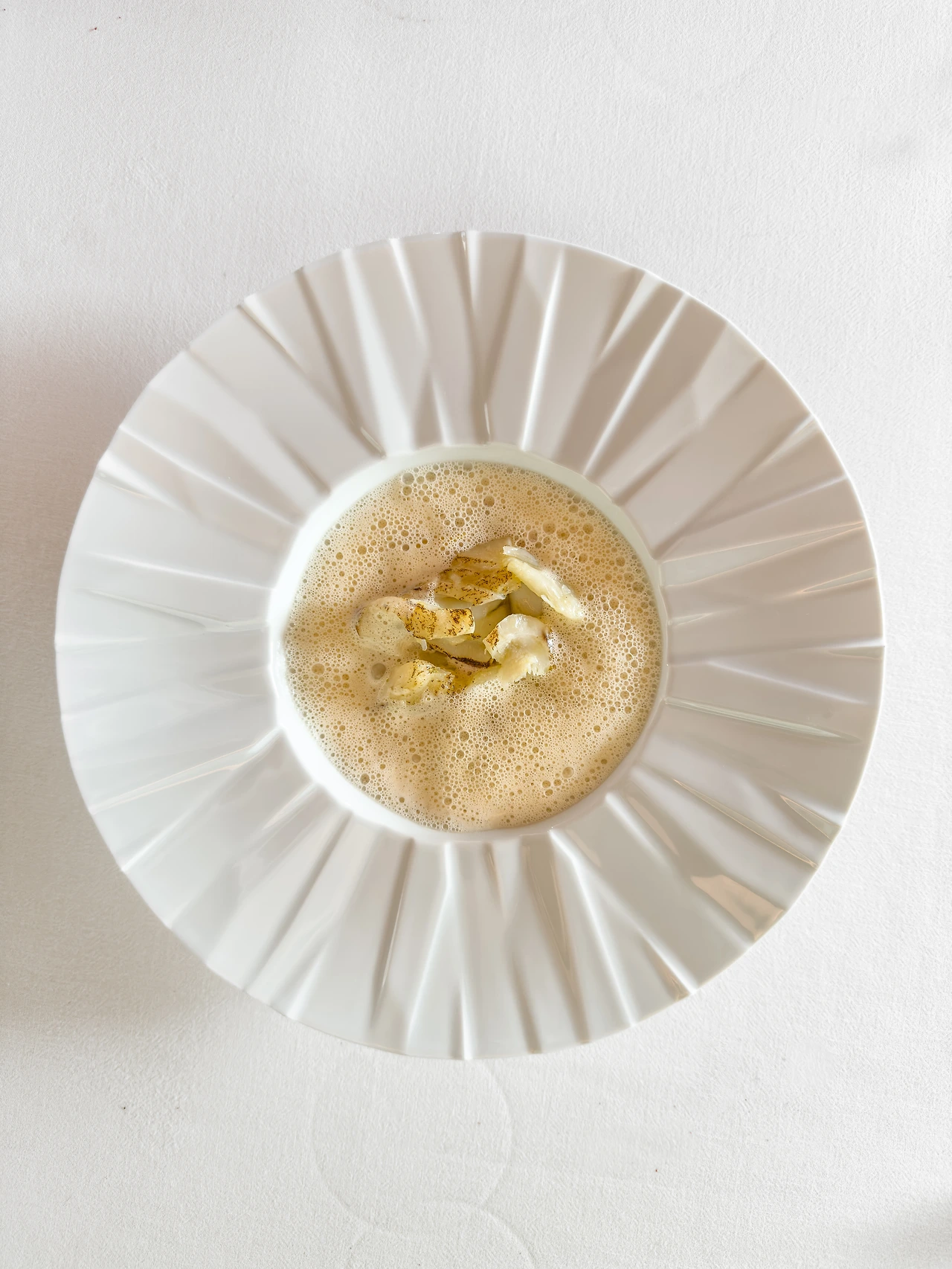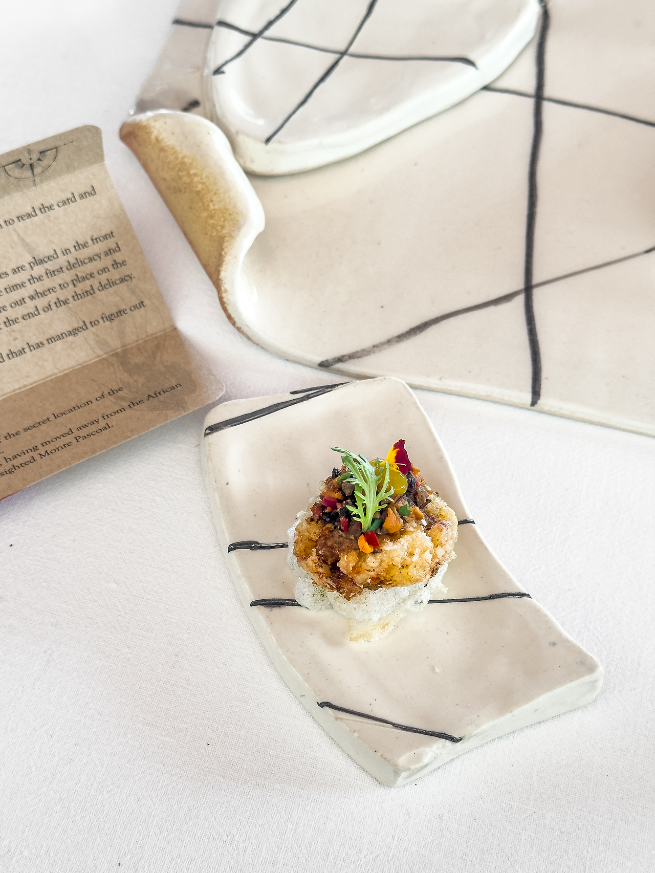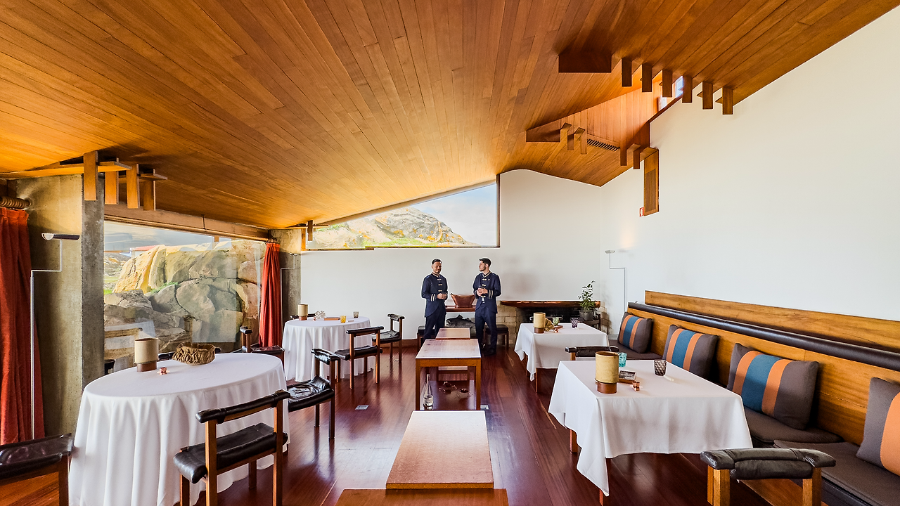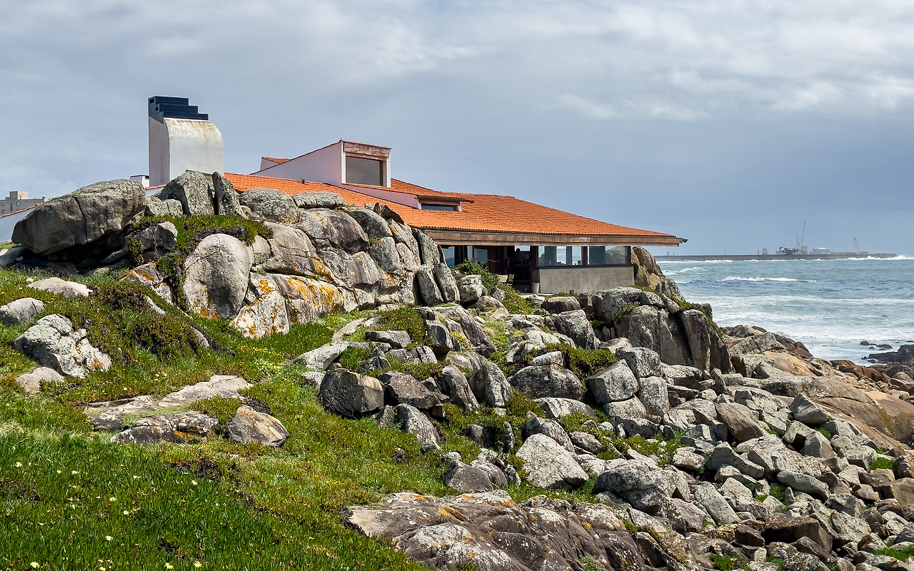 멀리서부터 보이는 건물은 암석 지대에 홀로 서 있다. 가까이 다가서면 대리석으로 마감된 기단과 계단을 마주하게 되는데, 이들은 주차장과 언덕을 경계 짓는다. 계단에 오르면 건물은 시야에서 사라지고 빛은 걸러져 바닷소리만이 공간을 채울 뿐이다. 주변 풍경, 바닷소리, 태양 빛이 건물 진입 설계에 단초가 된다. 계단의 선과 수평선이 같아질 때쯤, 레스토랑이 모습을 드러낸다. 낮게 깔린 지붕이 바다를 향해 수렴하고 수평선을 한 번 더 강조한다. 포르투갈의 전통 가옥에 쓰이는 붉은 기와로 지붕이 마감되어 있다. 멀리서 본 인상은 유심히 보지 않으면 거리의 여느 집과 같아 쉽게 지나치기 쉽다. 그러나 가까이서 본 인상은 어딘가 조금은 특별한 기색을 펼쳐 보인다. 정형적이지 않은 형태에서 오는 이질감이다. 지금까지 봐왔던 전통 가옥의 사각형과 다른 형태다. 평면상의 그리드나 기하학적 질서가 없다. 암석이 새로 융기하는 모습이다.