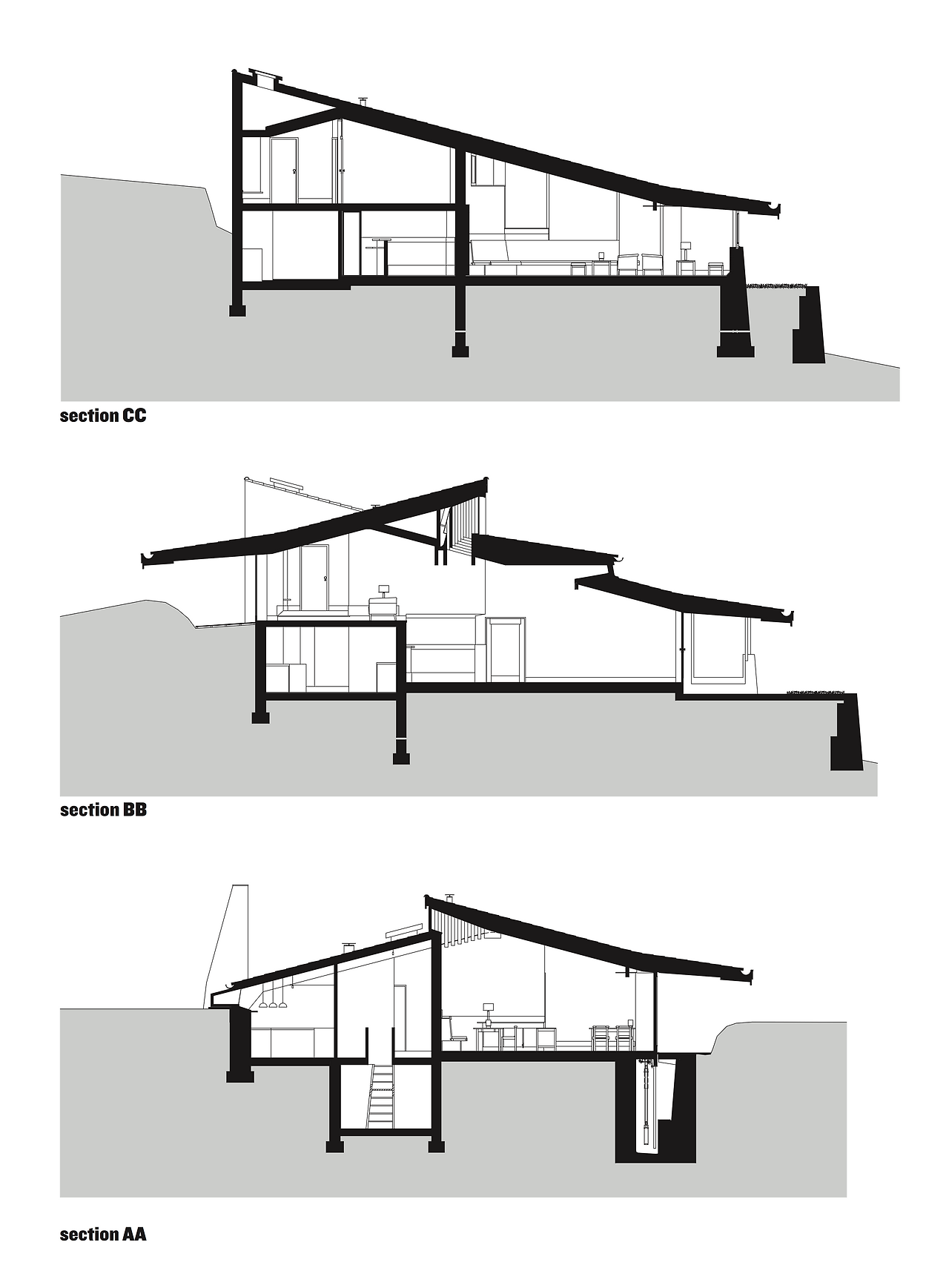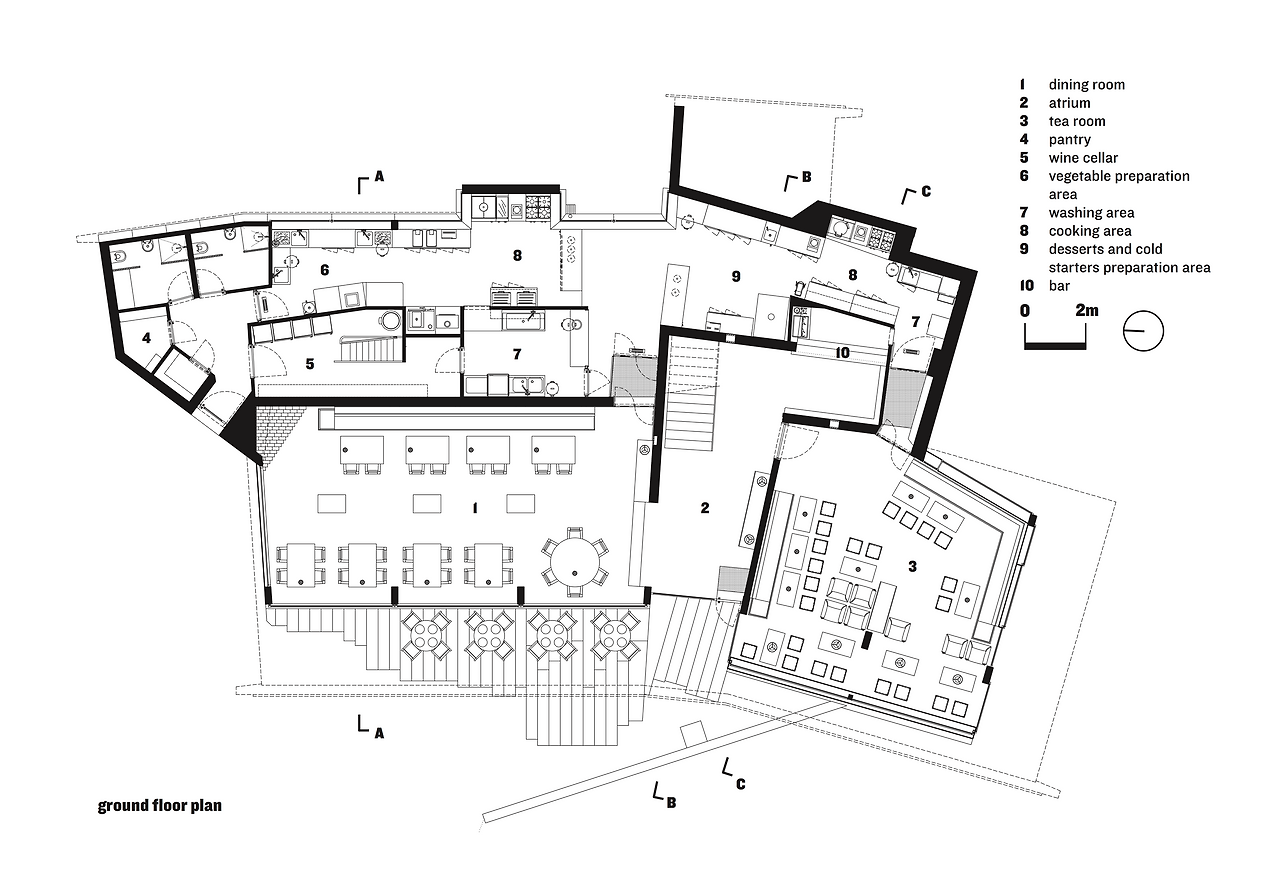 시자는 설계의 실마리를 땅에서 찾는다. 건물은 암석의 선, 자연의 선, 수평선 등 자연에서 추출한 선의 군집을 건물에 조금씩 덧붙여 나갔다. 암석의 윤곽을 담아낸 건물은 그래서 소박하다. 전통 가옥에서 느낄 수 있는 정겨움과 형태의 소박함은 내부에서도 그대로 이어진다. 머리가 닿을 듯한 입구를 지나 문을 열고 들어가면 로비가 나오는데, 그 위치는 2층이다. 언덕 지형으로 자연스레 1층에 자리한 레스토랑과 주방은 해안선을 따라 한번 꺾여 있다. 그래서 공간은 전체가 한눈에 읽히지 않고 사용자가 공간을 탐험하게 된다.
