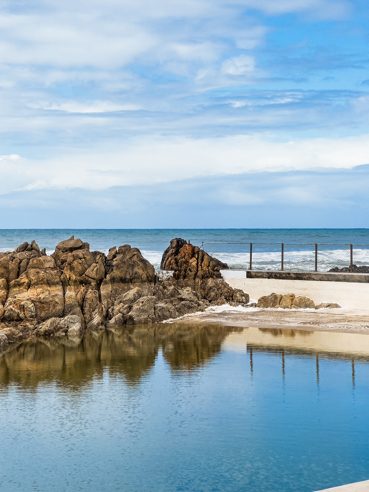 레스토랑에서 배를 채우고 해안가를 따라 걷다 보면 레카 수영장이 나온다. 수영장은 레스토랑과 달리 눈에 띄지 않는다. 도로에서 다수가 같은 곳을 향해 사진 촬영을 하고 있다면, 그곳에 수영장이 있음을 짐작하면 된다. 둘 다 땅에 순응하지만, 레스토랑은 건물이고 수영장은 벽으로 경계 짓는 시설이기 때문에 높이가 낮다. 수영장의 지원 시설(화장실, 샤워실, 카페)의 지붕은 해안도로 높이에 맞춰져 존재를 드러내지 않는다.