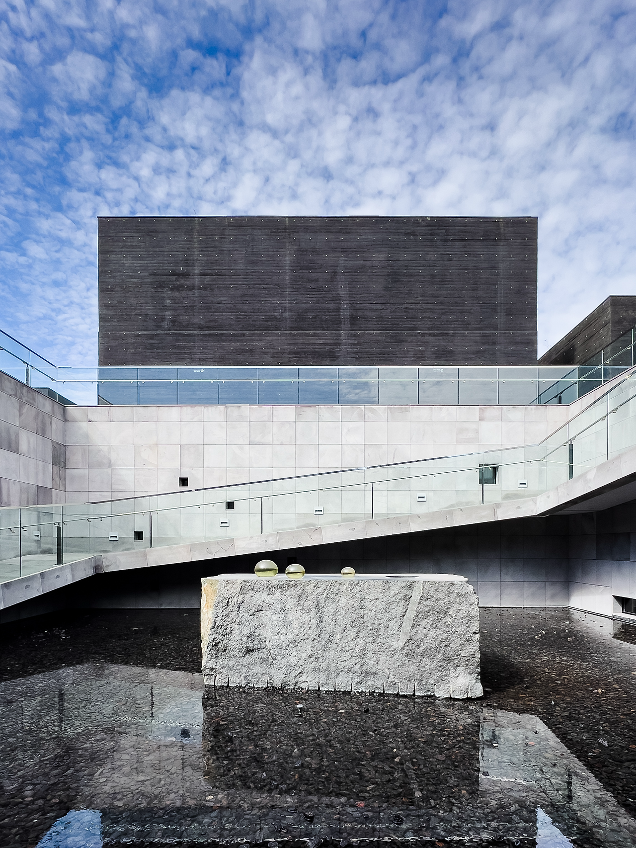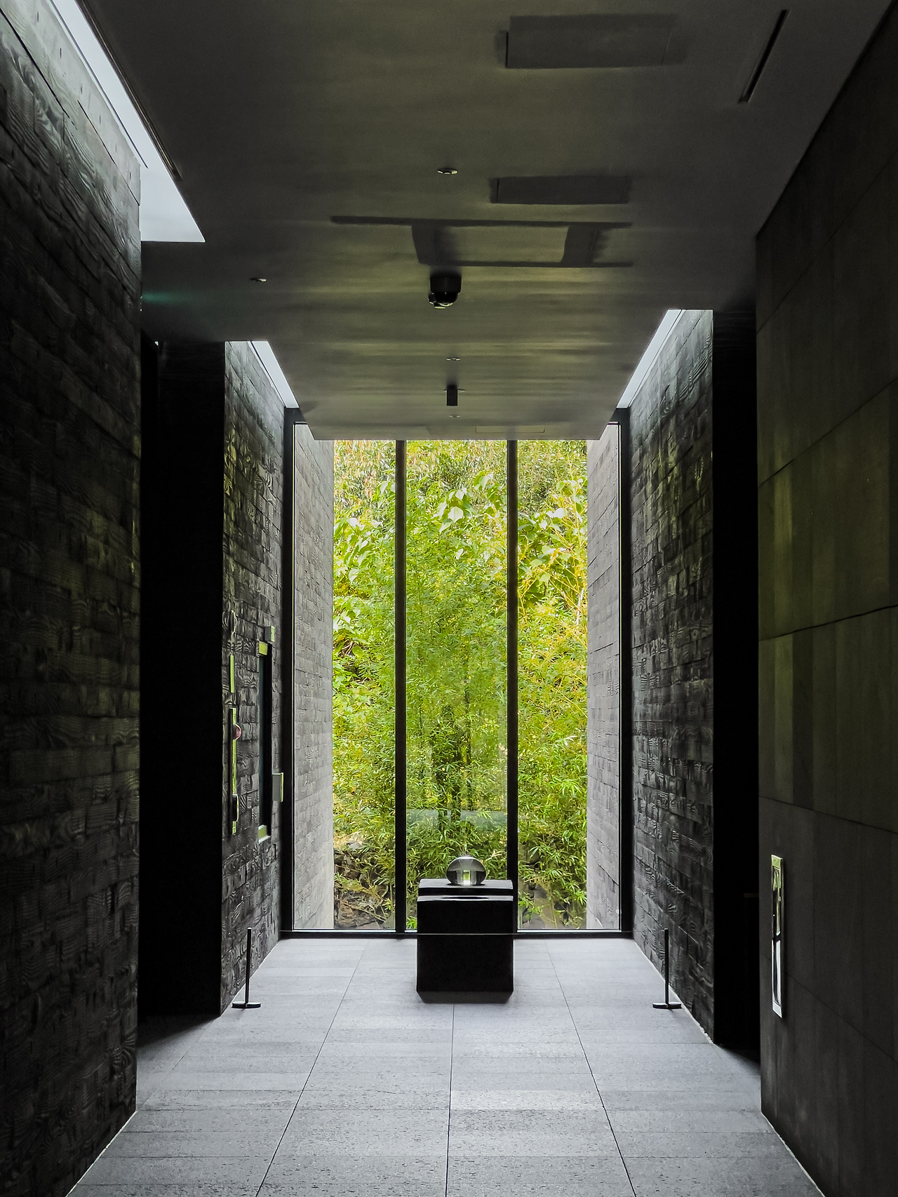 거칠고 어두운 벽은 전시장과 로비를 제외한 모든 공간을 감싼다. 전시장의 천창을 통해서, 중정을 통해서, 복도 사이사이 점처럼 파인 미세한 구멍과 복도 끝 창문, 사각뿔 천창을 통해 빛이 들어온다. 복도에 농담을 만들어 관객을 떠돌아다니게 하고 끝내 마주한 물방울에 시선이 고정된다.