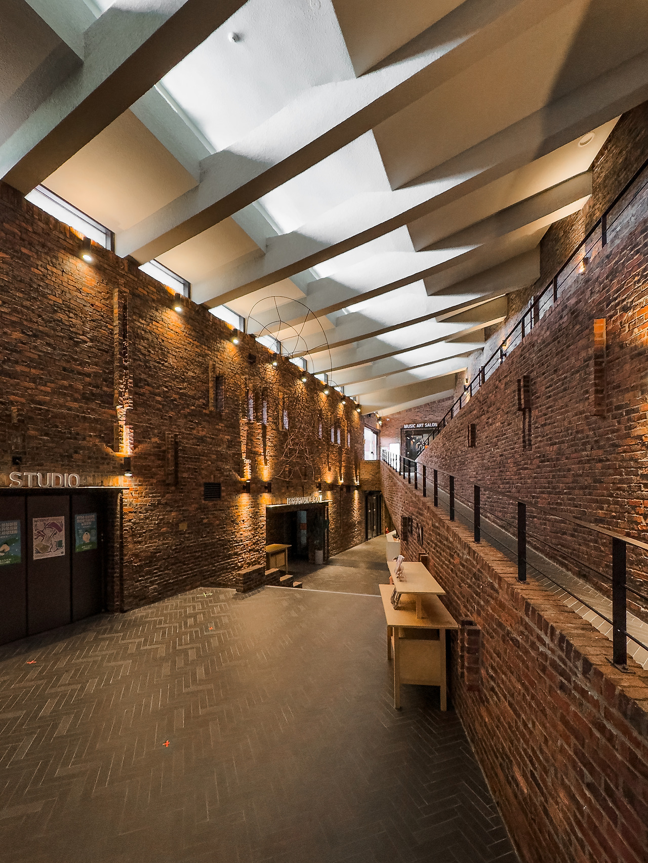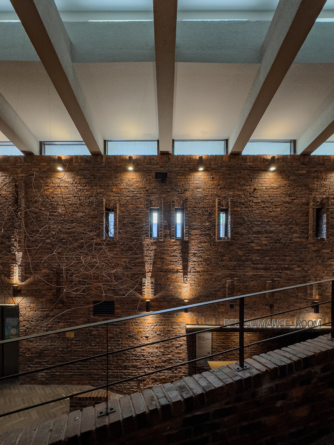 오돌토돌하게 쌓인 붉은 벽돌이 공간을 감싸고 얇고 긴 창문, 지붕과 벽 사이 틈으로 들어오는 빛이 주황 조명과 만나 내부를 은은하게 비추죠. 그래서 높은 로비는 동굴 같기도 하고, 일정 간격 요철을 반복하는 벽돌 장식 때문에 고대 유적지 같기도 합니다. 건물에 비해 넓은 로비, 완만한 경사로, 곳곳에 마련된 작고 폐쇄적인 공간은 아이들의 상상력과 호기심을 자극하기에 안성맞춤입니다. 경사로를 따라 경주하고, 때론 숨바꼭질하며 아이들 스스로 공간에 새로운 용도를 부여하죠.