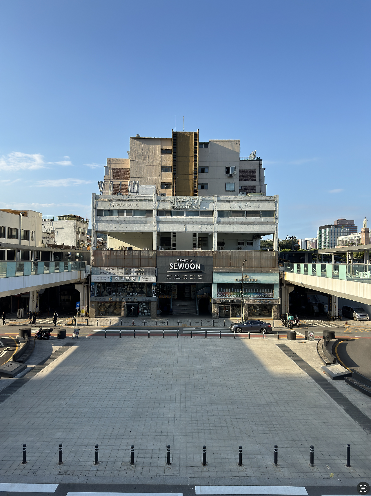 세운상가(1968)에서는 종로 3가(종묘 앞)부터 남산 입구까지 이르는 길이 1km, 폭 45m, 지상 7층 규모인 '메가 스트럭처(mega structure)'를 도입하여 서울의 주요 축인 동서축에 이를 관통하는 남북축을 추가하여 도시에 새로운 질서를 부여했죠.