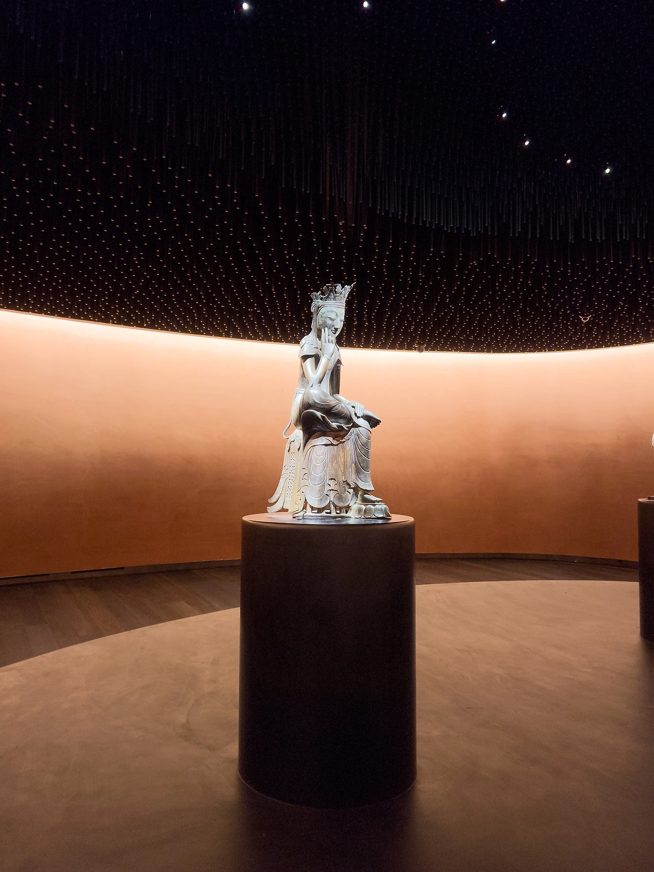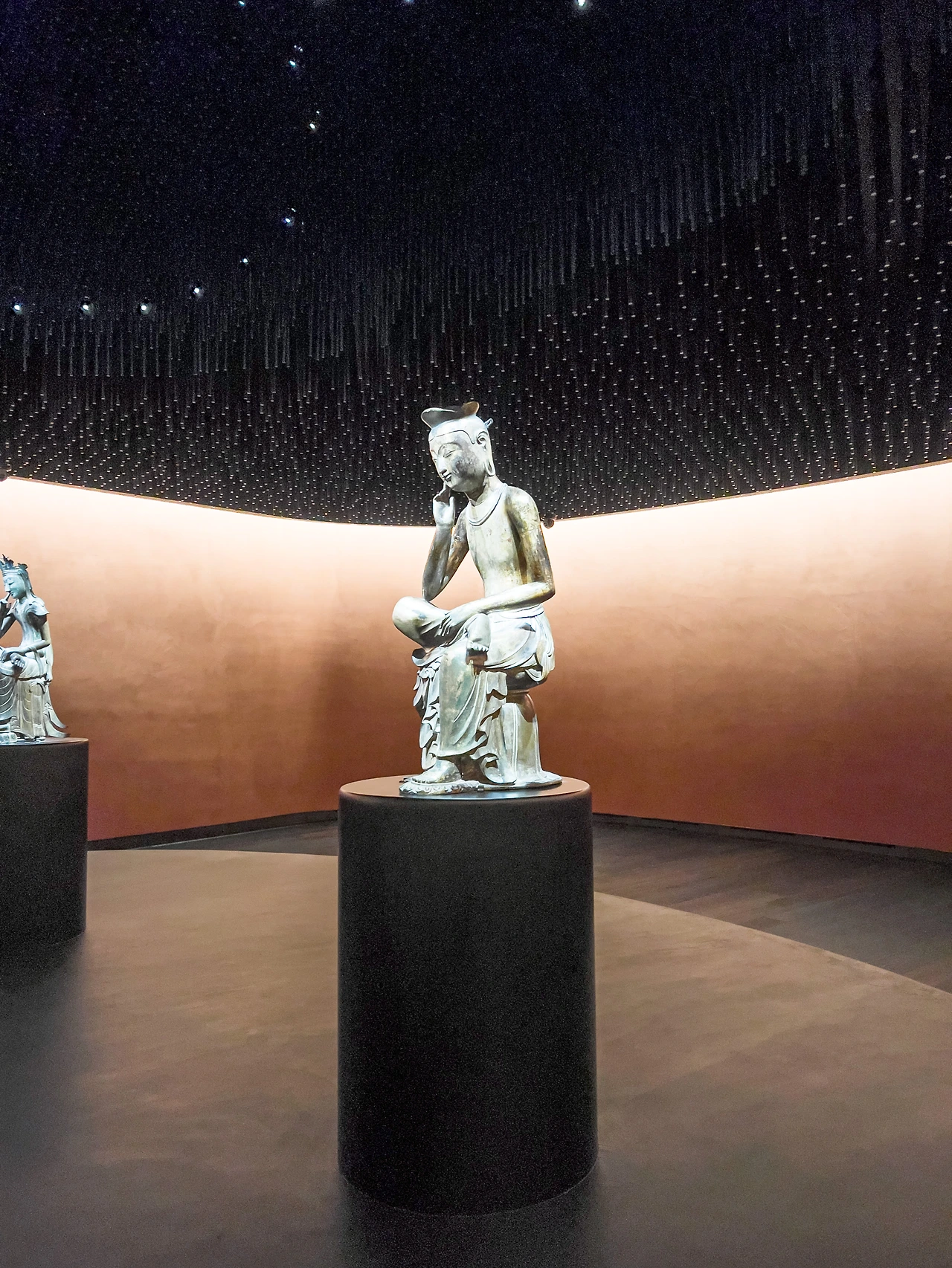 꽤 넓은 공간에 오롯이 두 작품만을 전시한 국립중앙박물관의 용기와 도전이 대단하다. 프랑스 파리의 루브르 박물관도 한 전시장에 오롯이 모나리자 한 작품만 전시하지 않았다. 하지만 이곳은 실 전체를 우리의 국보 반가사유상을 위한 공간으로 할애했고, 더 나아가 뻔한 전시장이 아닌, 입구부터 출구까지 탄탄한 구성으로 이야기를 전개해나갔다. 작품에 더 집중할 수 있게 설명글은 최대한 배제하여 고리타분한 전시장이 아닌 '사유의 방' 그 자체로서 작품과 하나 되는 방을 만들었다.