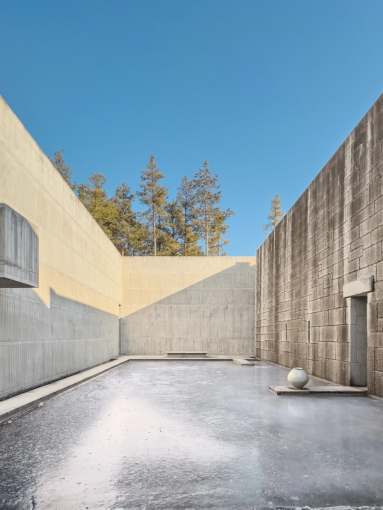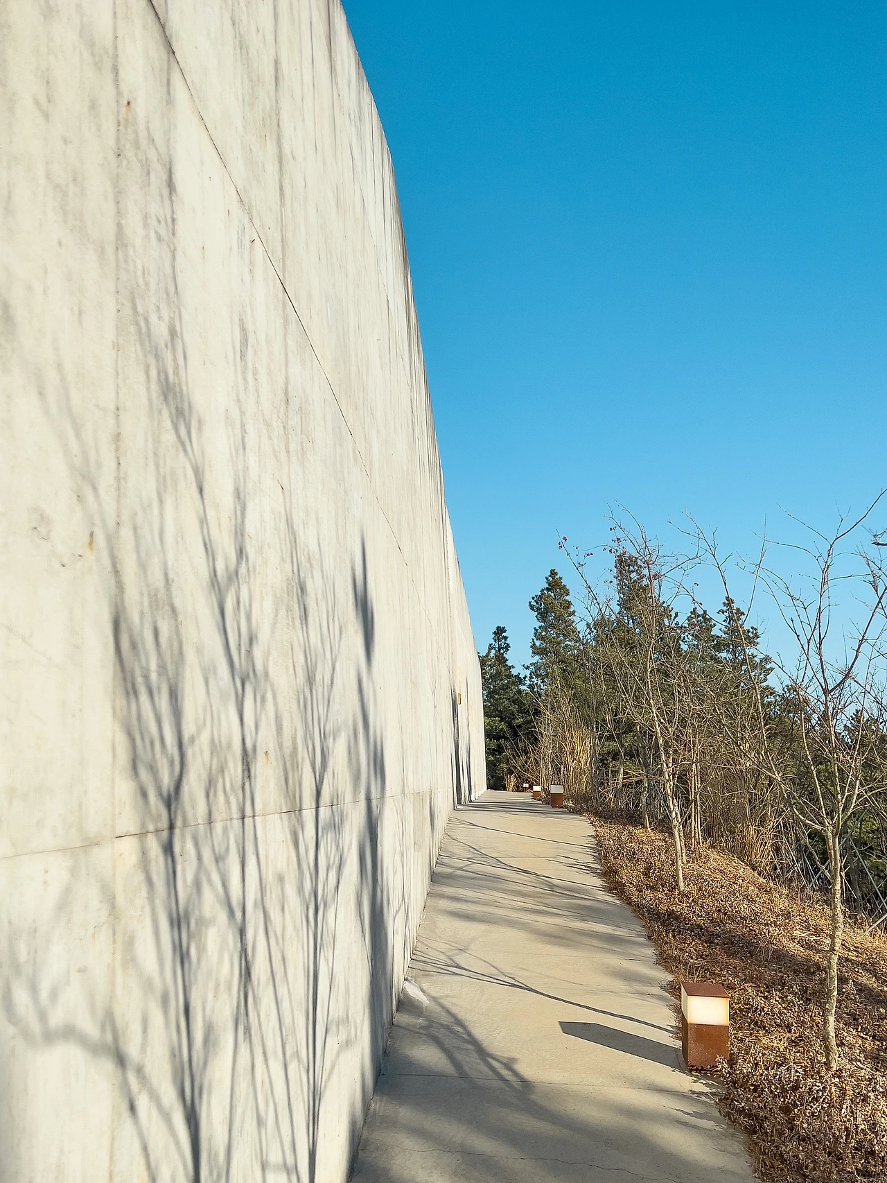 명정(暝庭)이라는 공간은 '어둠의 공간', '어둠의 정원'의 뜻을 가진다. 여기에 지하로 내려가는 동선, 수공간을 끼고 둘로 나뉜 공간, 그것을 이어주는 다리로 볼 때, 분명 삶과 죽음 사이에 어떠한 것을 선택하라고 만든 공간임은 분명하다. 하지만 이곳은 현실과 달리 부추기지 않는다. 어떤 선택을 하든 나무라는 이 하나 없고, 선택도 언제든 바꿀 수 있다. 붉게 칠해진 벽으로 다가가 건너온 반대편을 바라보며 보이는 하늘과 나무, 의자에 앉아 갈등하는 이의 모습으로 삶은 무엇인가 고민하게 되고, 반대로 콘크리트 의자에 앉아서는 붉은 벽과 하늘, 하늘로 승천하듯 사람이 서 있는 전망대를 바라보며 죽음의 공간은 어떨지 상상한다.