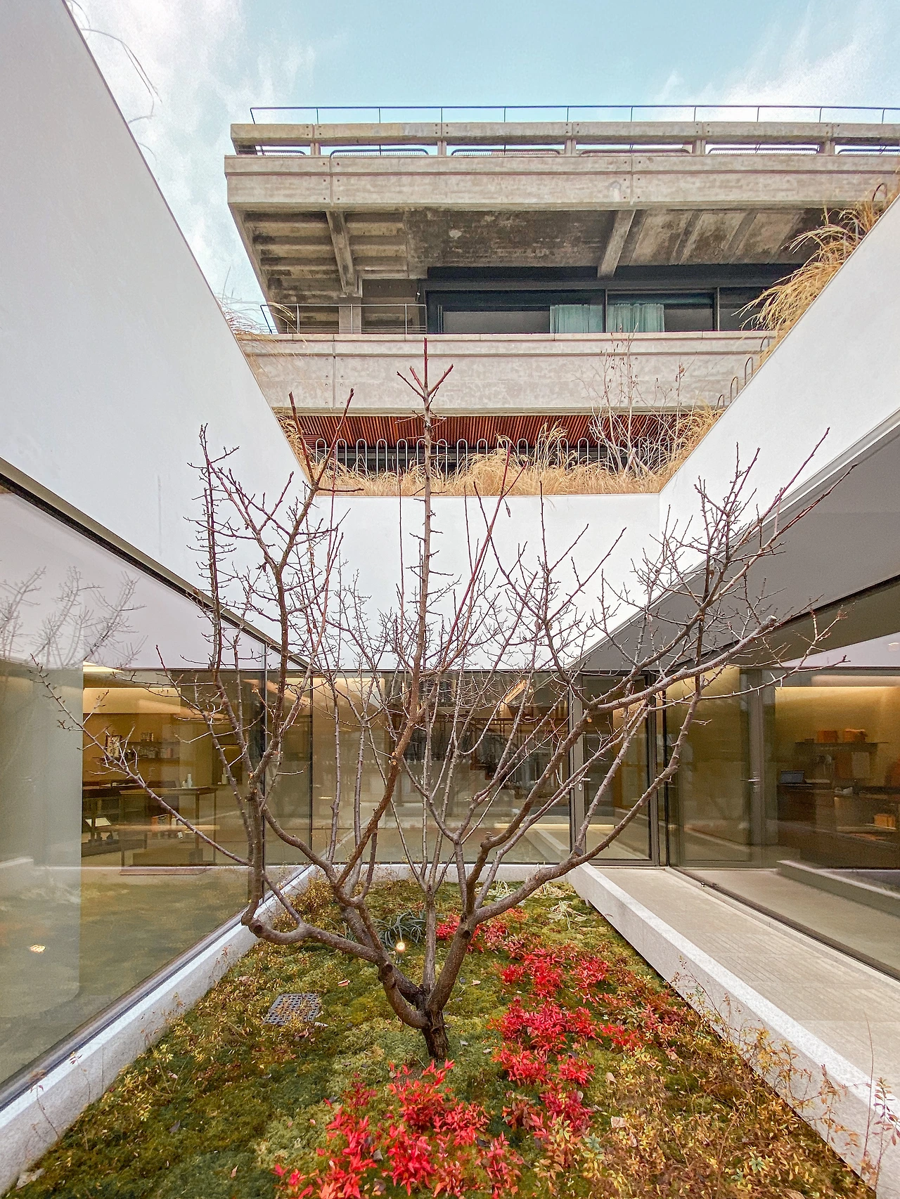 백색 건물의 중정을 통해 들어오는 빛은 지하를 쾌적하게 하고 사람들의 동선과 시선을 유도한다. 중정을 만들면서 튀어나온 건물의 덩어리가 양옥 1층의 테라스를 만들어 시각적으로도 한옥과 연장선에 있음을 알린다. 그리고 한 단, 한 단씩 놓인 내부 공간 구성은 사람들을 매끄럽게 양옥으로 이동할 수 있게 해주기에, 이곳에서 단의 역할은 크다.
