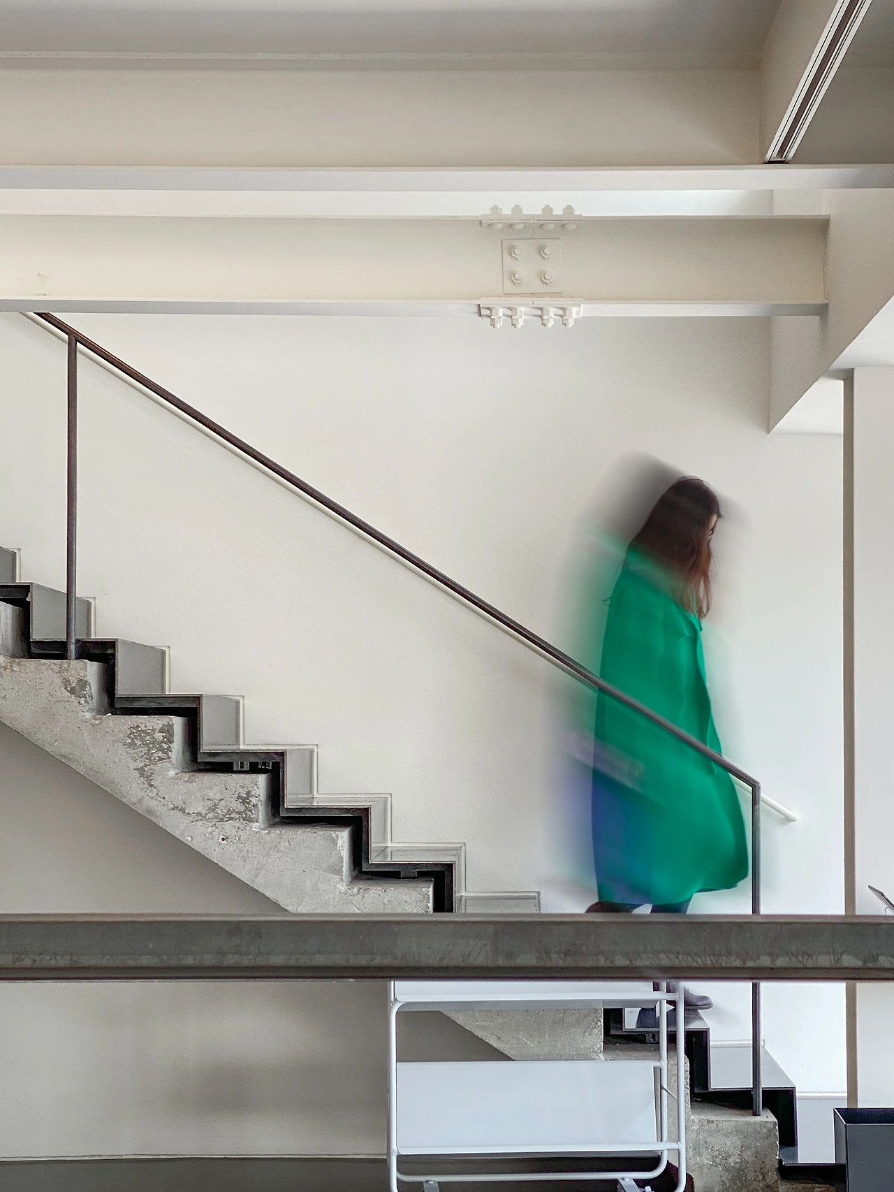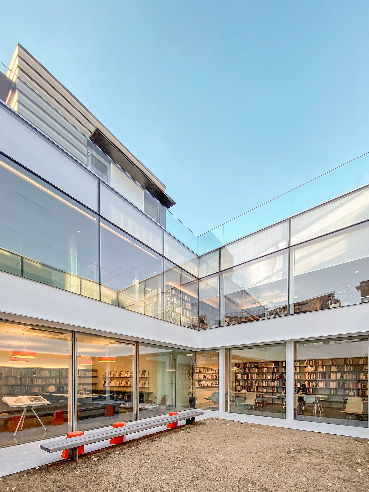 계단을 타고 올라가 마주한 광경은 안과 밖의 대비가 뚜렷했다. 어두운 벽돌과 그렇지 않은 밝은 내관의 마감재, 도로에 완전히 밀착되어 여유라곤 찾아볼 수 없는 외관과 중간을 비워내어 다양한 활동이 일어날 수 있는 여지를 준 내부 중정, 정돈되지 않은 외관과 달리 직사각형으로 반듯하게 잘리고 정리된 배치가 더욱이 이곳의 구석구석을 탐험해보고 싶게 만들었다.