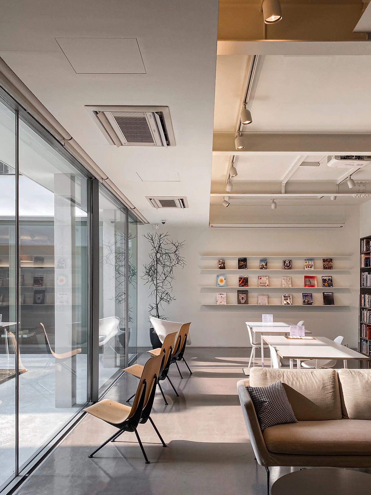 중정 너머로 보이는 한옥과 그것을 바라보게 배치된 의자, 집에 사용될 정도로 좁은 폭을 가진 계단과 다락방을 연상시키는 3층은 오랫동안 예술에 몸을 담근 디자이너의 집 같았다. 그곳에는 그가 그동안 수집했을 것 같은 디자인 계열의 책들이, 지금은 구할 수 없는 책부터 구한다 한들 리셀 가격이 붙어 구매할 엄두도 못 내는 책들이 많았다. 그곳에서 나는 내로라하는 건축가들의 작품집을 보며 시간 가는 줄 모르게 책을 읽었고, 이곳을 방문한 다른 이들은 무슨 책을 보는지 궁금해 한참을 돌아다녔다. 그들은 저마다 관심 있는 책에 빠져 집중하고 있었다.