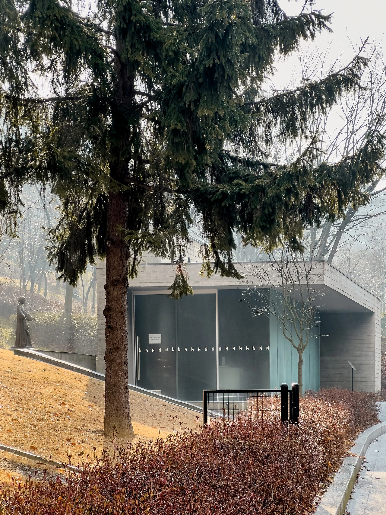 남양성모성지 입구에서부터 보이는 한 쌍의 타워에 시선을 빼앗긴 채 걷다 보면, 초봉헌소를 마주할 수 있다. 입구와 대성당 중간길, 보행자를 방해하지 않기 위해 뒤로 물러서 있는 것은 건물이라 하기엔 작고 아담해 창고를 떠올리게 한다. 하지만 유리 뒤로 보이는 내부의 모습과 그 속의 경험은 적다고 무시하면 큰코다칠 수준이다.