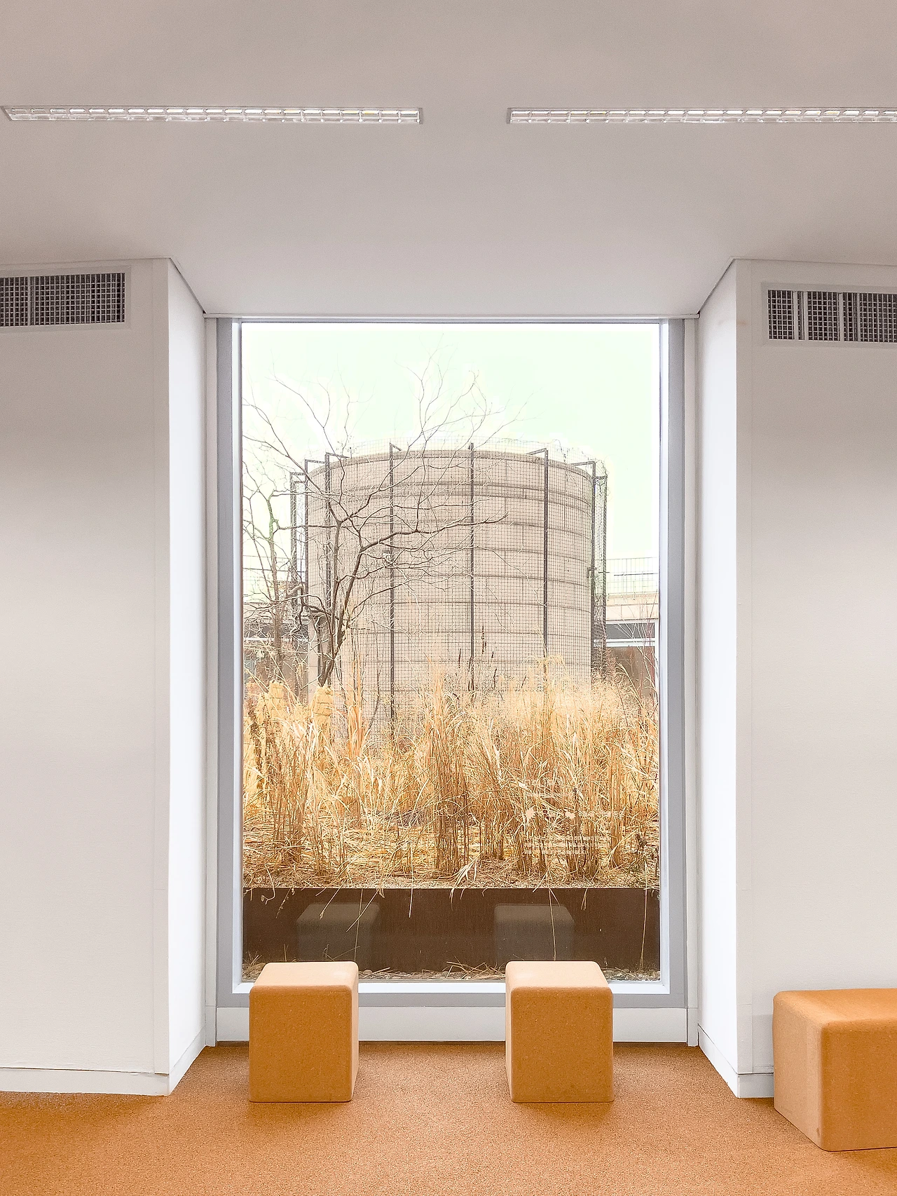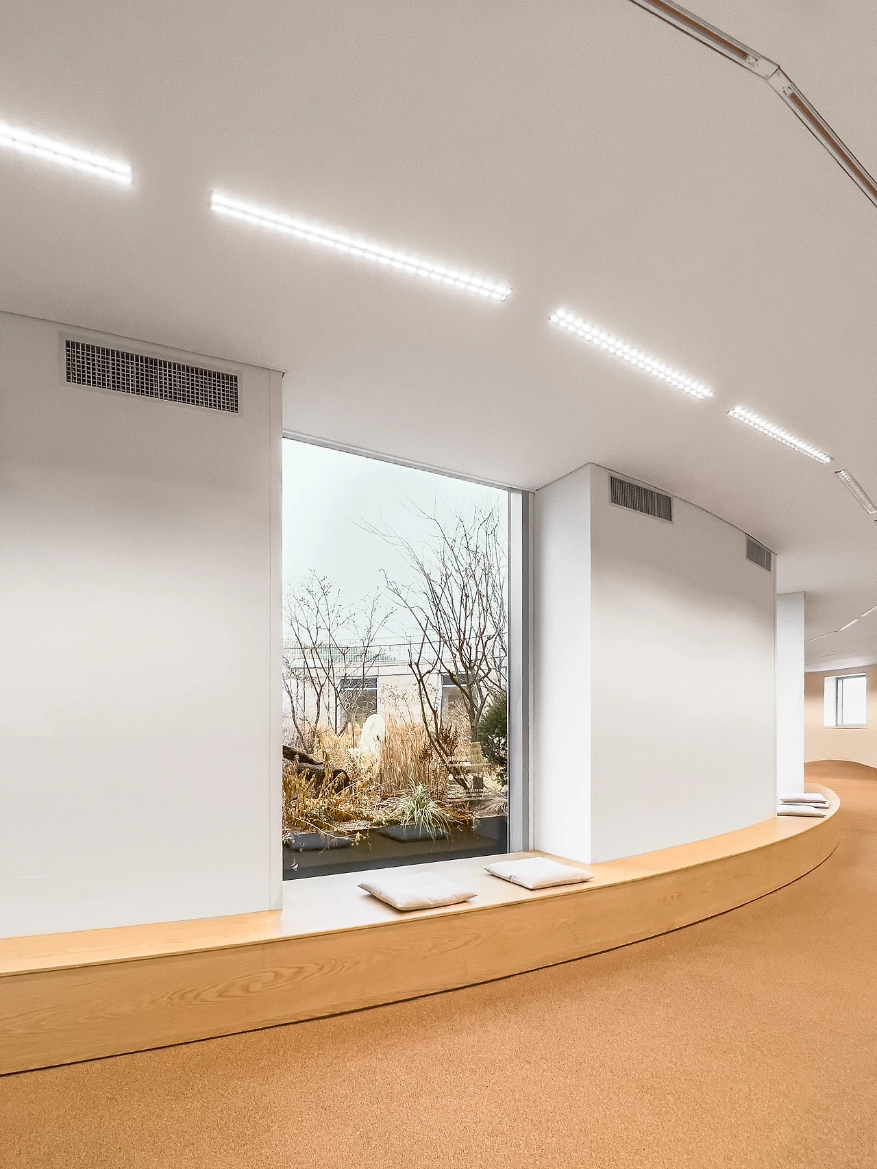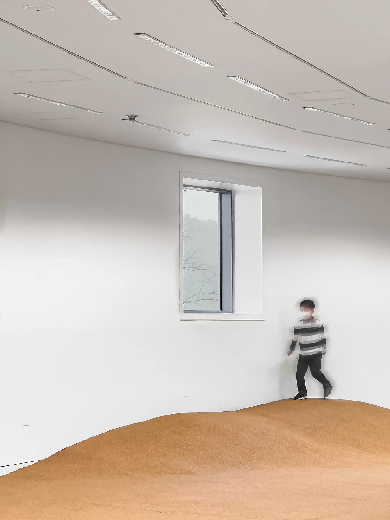 내부의 프로그램인 동그라미 쉼터는 일부 바닥이 흙더미를 쌓아 올린 것처럼 올라와 아이들이 그곳에서 놀기도 하며, 창밖에 펼쳐진 하늘과 산이 겹쳐 만든 선을 감상하기도 한다. 곳곳에는 어떤 식생이 심겨 있는지 설명글도 있어, 끝이 없는 순환 동선을 가진 원형 건물에 쉼표를 제공한다.