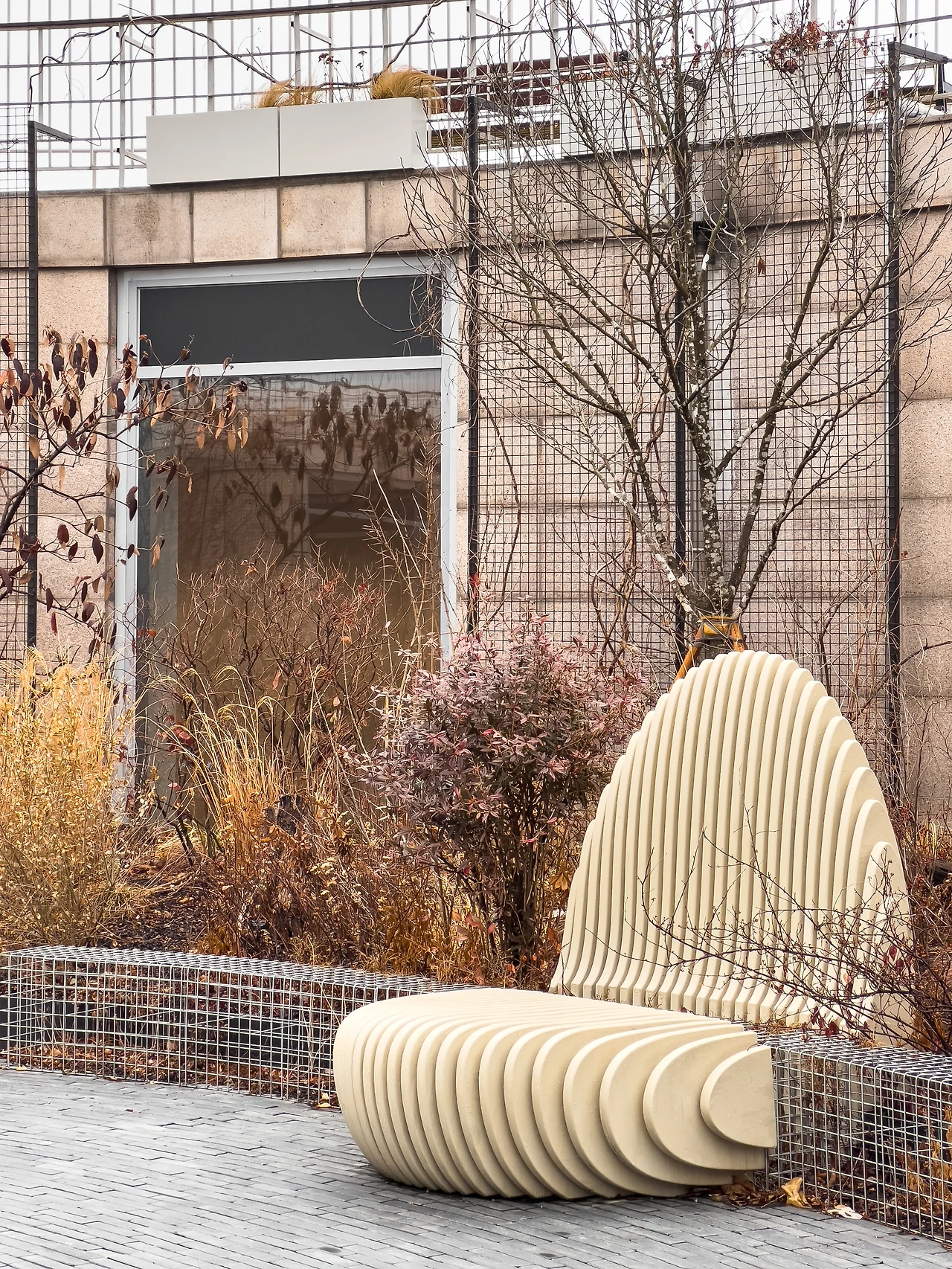 하지만 과천관이 보여준 이번 프로젝트는 자신들의 모습에 변화를 꾀해, 다른 세대와 어울리지 못하는 꼰대가 아닌, 지금 세대와 어울릴 수 있는 인싸가 되기 위해 노력하고 있다. 새롭게 단장한 2원형전시실에서 펼쳐지는 두 개의 공간은 모두 휴식이라는 단어로 수렴한다. 주변 산야의 식생을 정원의 주된 재료로 사용하고 그 내부는 정원을 빙 둘러앉아 식생을 보고 감상할 수 있게 했다. 정원에서는 두 개의 창문은 뒤로 보이는 산과 정원의 자연을 중첩해 색다른 느낌을 준다.