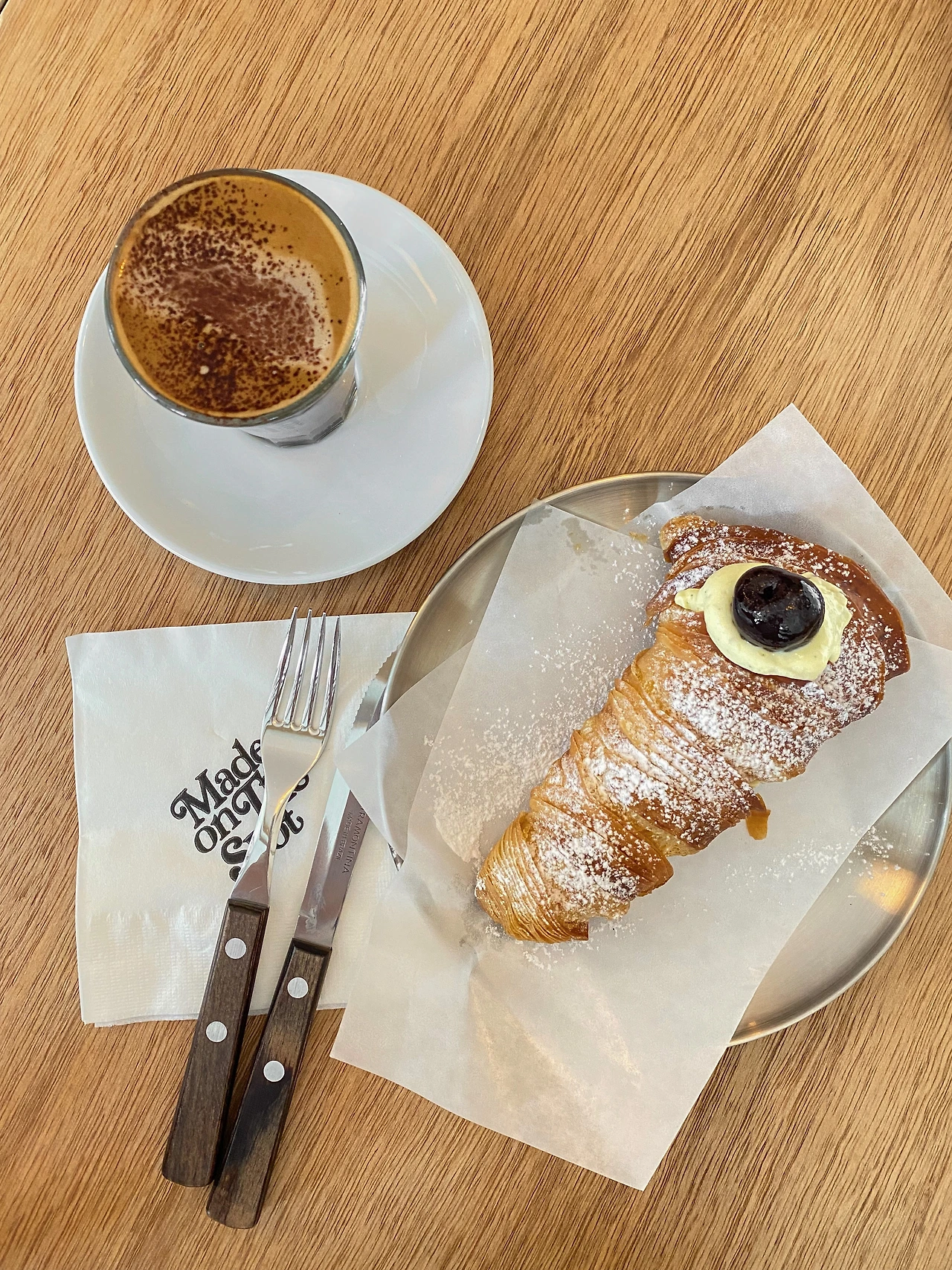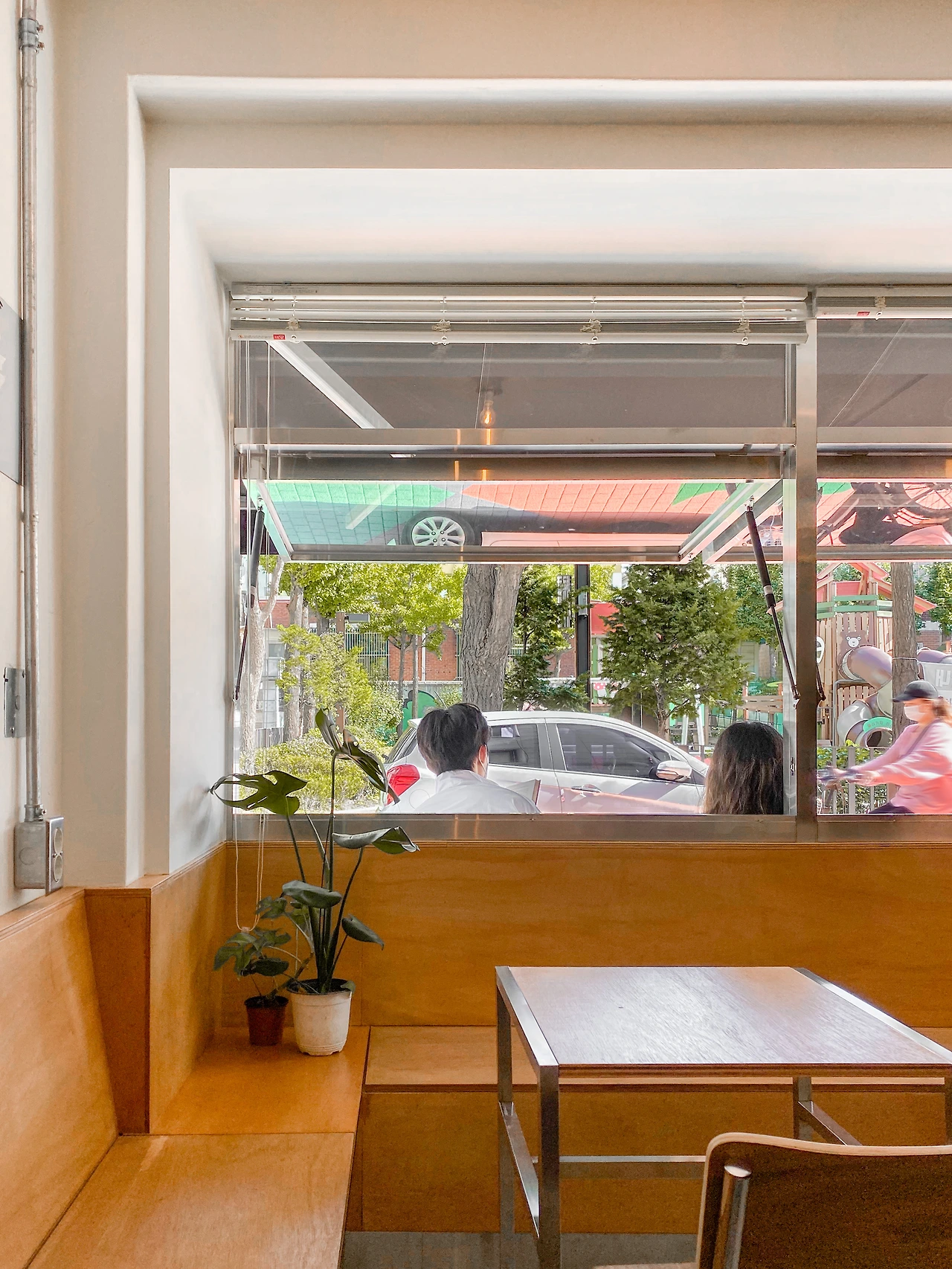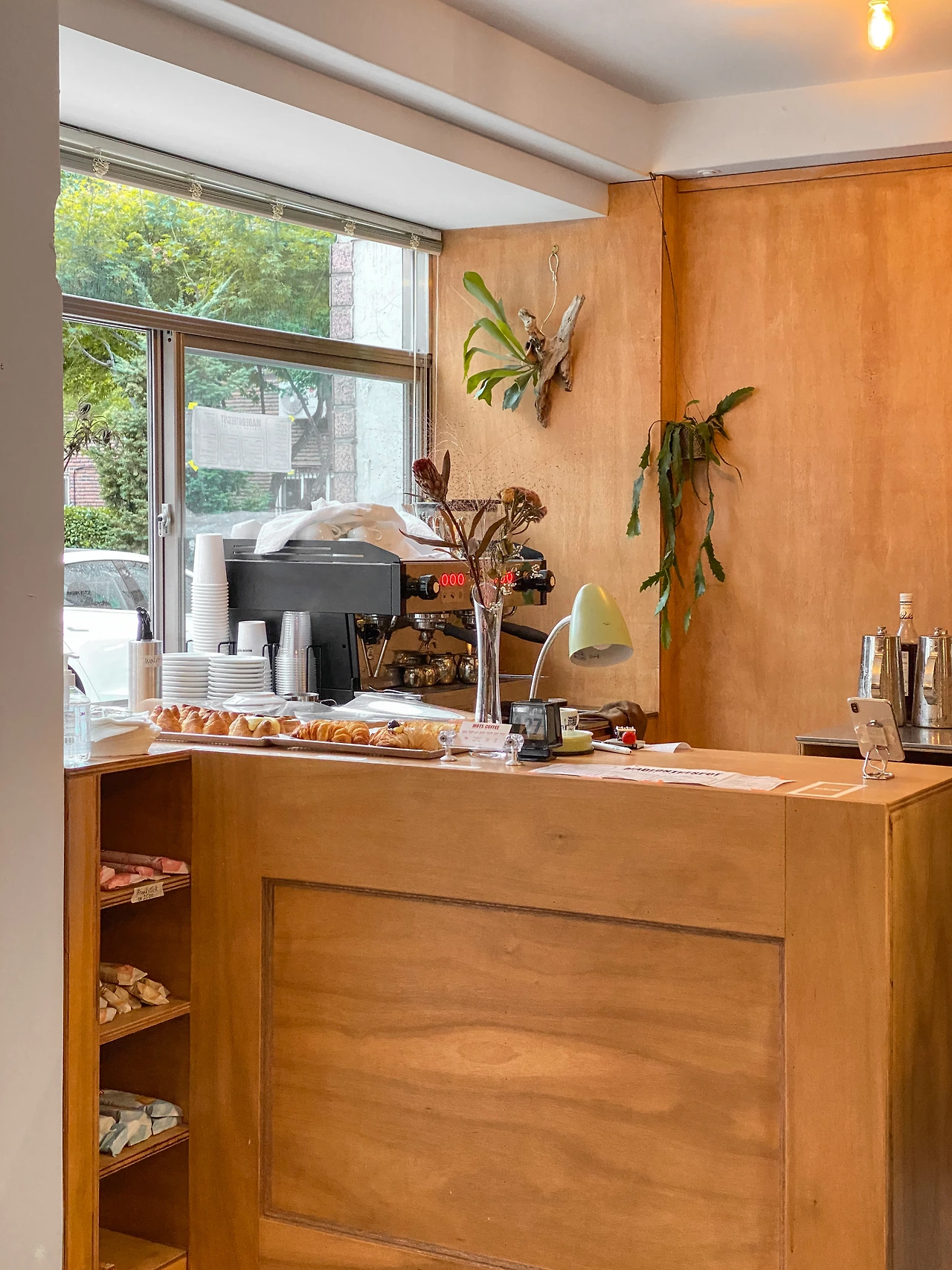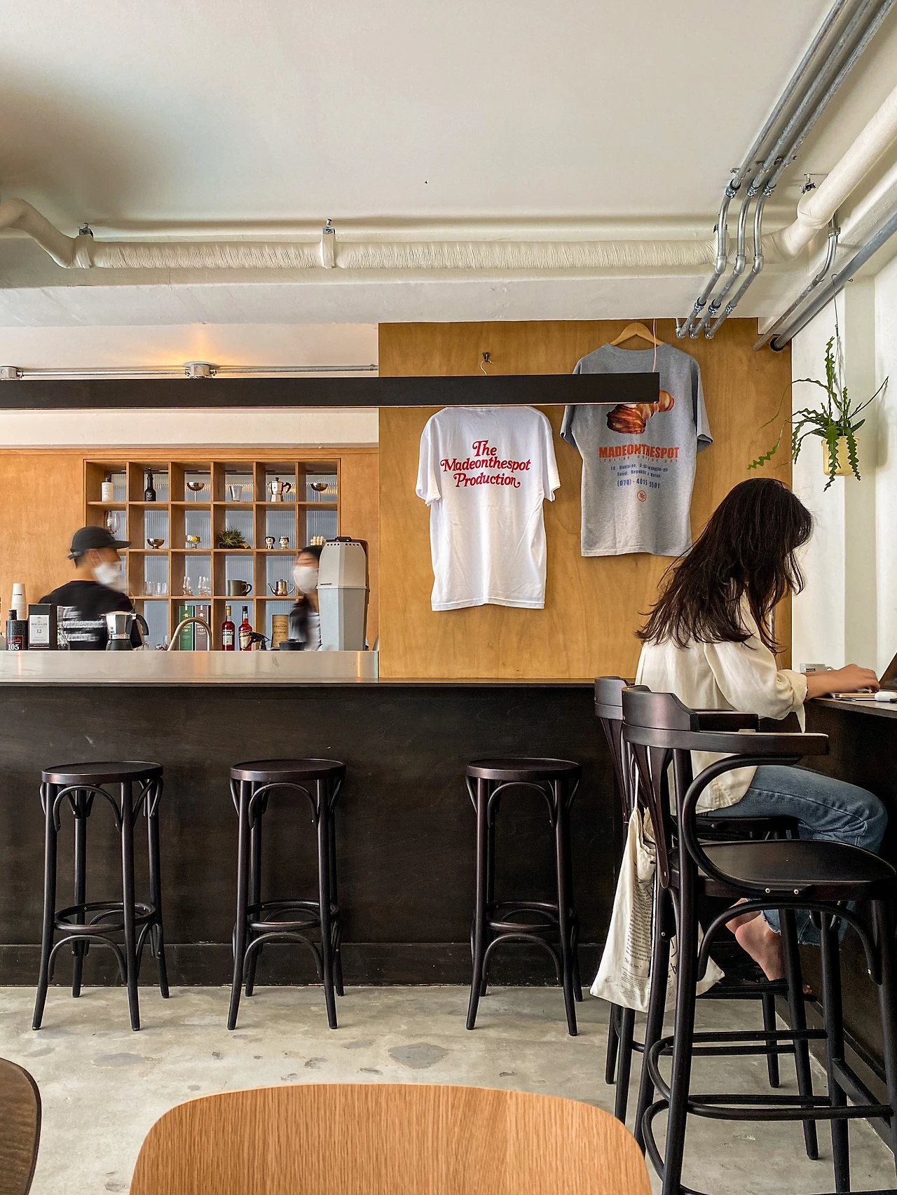 멀리서부터 노랫소리가 밖으로 흘러나온다. 창은 열어젖히고 문은 활짝 열어 지나가는 이들을 반기는 모습은 사람으로 따지면 MBTI의 E 같다. 북적이는 공간 속에서 발 빠르게 자리를 잡아 커피를 마시며 이야기를 나누는 사람들부터 바 테이블에 앉아 각자 생각에 잠겨 침묵하는 사람들, 직원과 수다 떠는 사람들, 날이 좋아 밖에서 커피를 마시며 주말 오후를 마음껏 즐기는 사람들까지. 작은 공간임에도 그곳에서 보고 경험할 수 있는 순간은 정말 다양하다. 여기에 열린 문을 통해 동네의 시끌벅적한 소리와 건너편 놀이터에서 아이들의 웃음소리가 카페의 음악과 하나 되니, 공간은 더 풍성해진다.