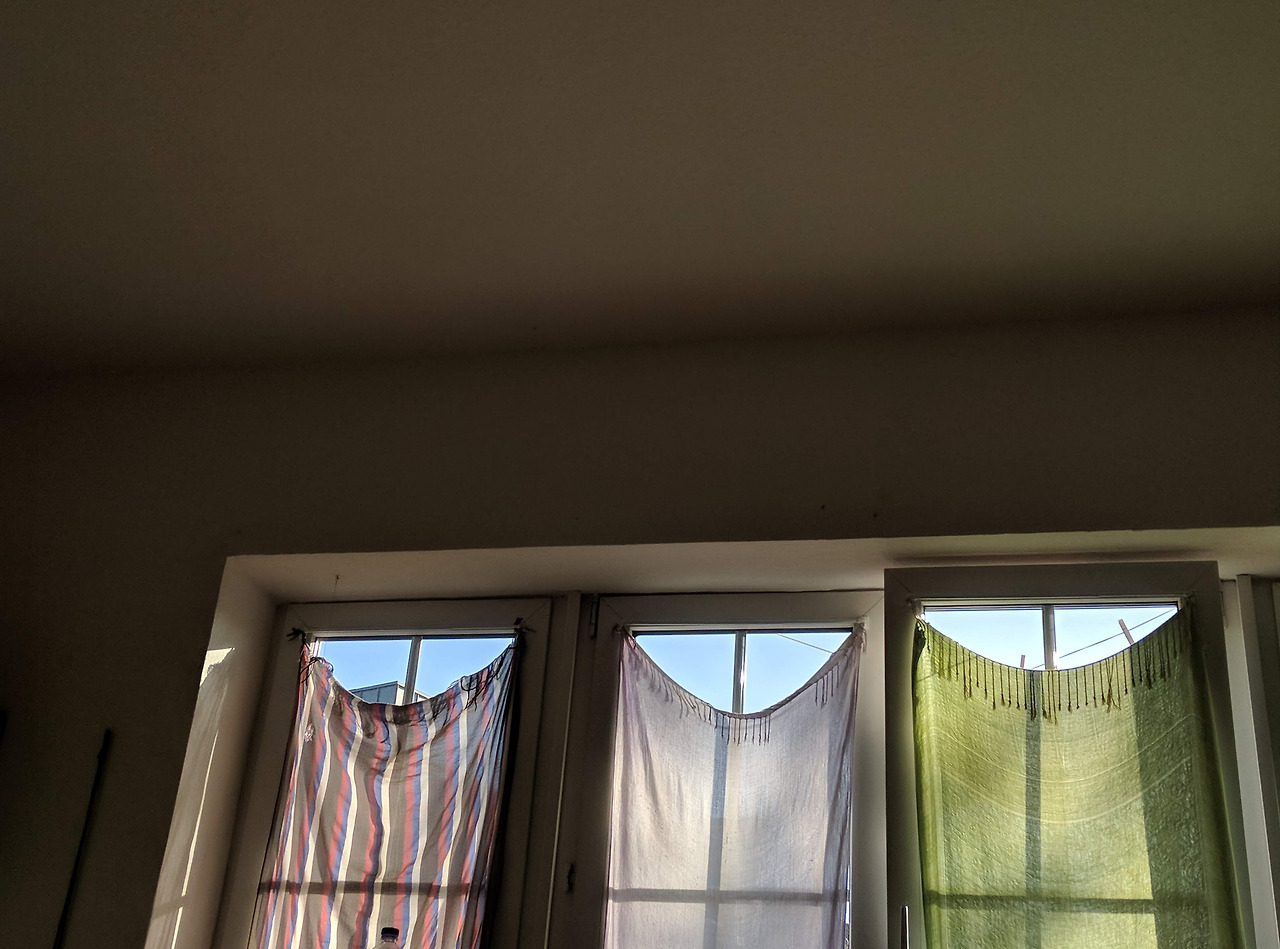 펨펠포트의 북유럽 아티스트 집에 커튼 대신 걸려 있던 스카프들.