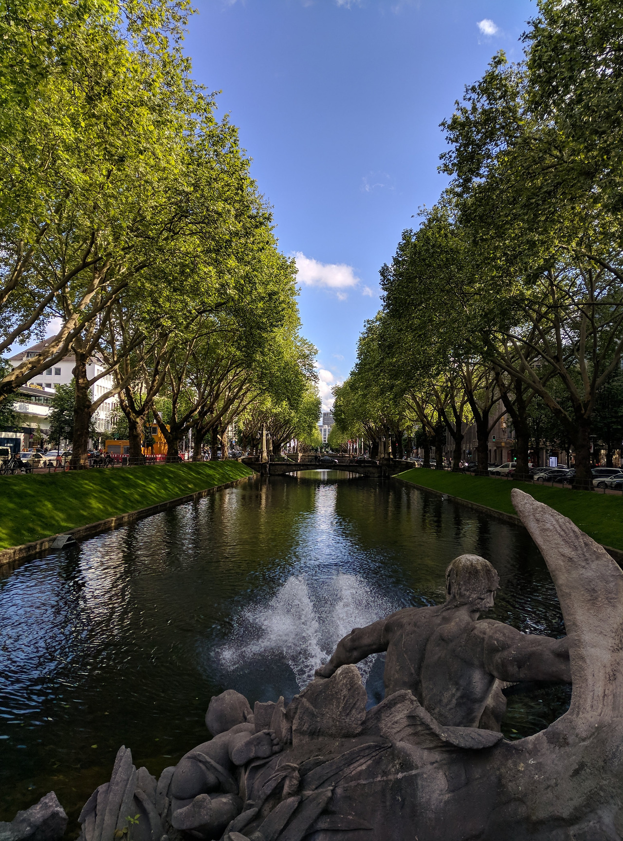 관광객 입장에서 샤도우슈트라쎄는 볼 것 없는 곳이고, 여기서 살짝 수로 반대편으로 올라가면 수변공원이 조성되어 있어서 초록을 느낄 수 있다. 그리고 바로 옆으로 뒤셀도르프의 유명 건축물 중 하나인 쇼핑몰 쾨보겐(Kö-Bogen)이 자리한다.
