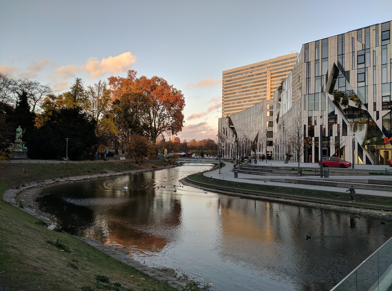 수변공원의 초록 옆으로 미래주의적(?) 건물이 자리한 이 풍경 역시 뒤셀도르프에 온 지 얼마 안 돼 도시에 정을 못 붙이고 있을 때 처음으로 맘에 든다고 여겼던 뷰였다.