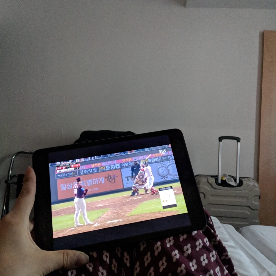호텔방에선 너무나도 할 게 없어서 야구를 봤다...