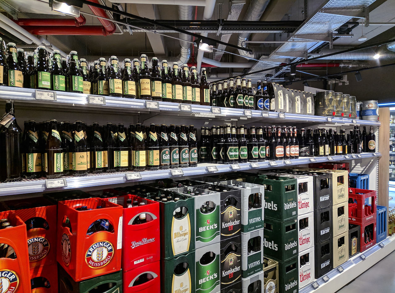 도시서 가장 큰 마트에 모여 있는 알트비어들.. 잘 보면 5리터짜리 대용량 케그로도 판다.
