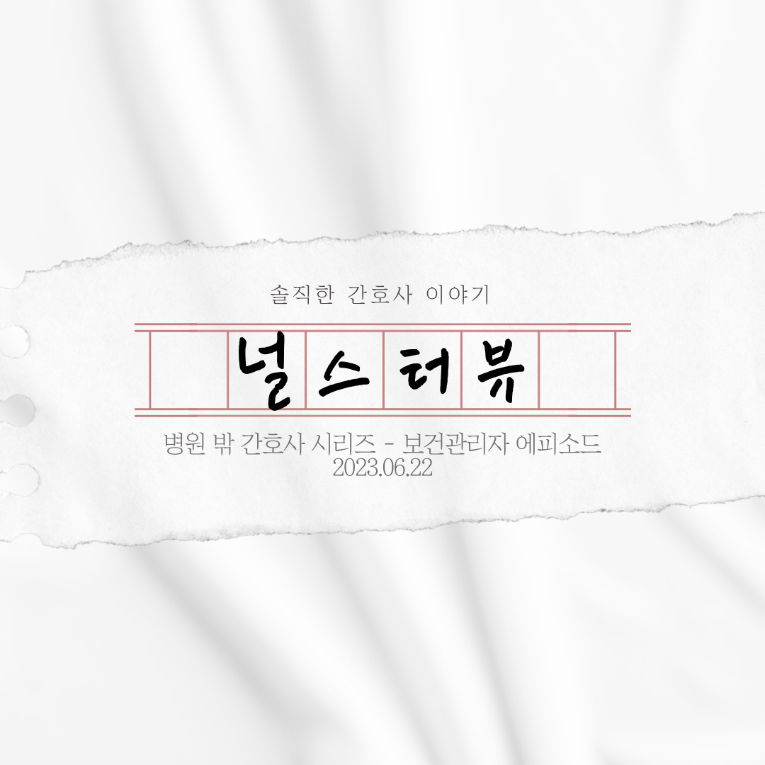콩이 언니 : 안녕하세요 저는 현재 에너지 공기업에서 보건관리자(산업간호사)로 재직 중인 콩이 언니입니다. 대학병원에서 약 4년간 병동 간호사로 근무하였고, 보건관리 위탁기관에서 1년간 재직하다가 현재 회사로 이직하여, 이곳에서 만 1년 5개월째 근무하고 있는 콩이 언니입니다.