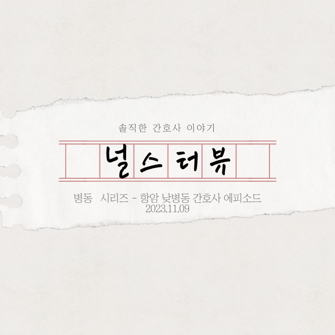 이든: '널스터뷰' 인터뷰에 참여해 주신 분들 중 가장 경력이 많으셔요. 정말 대단하고 멋지십니다. 오늘 선생님과 함께 항암 낮 병동 간호사에 대한 이야기 나눠보도록 하겠습니다.
