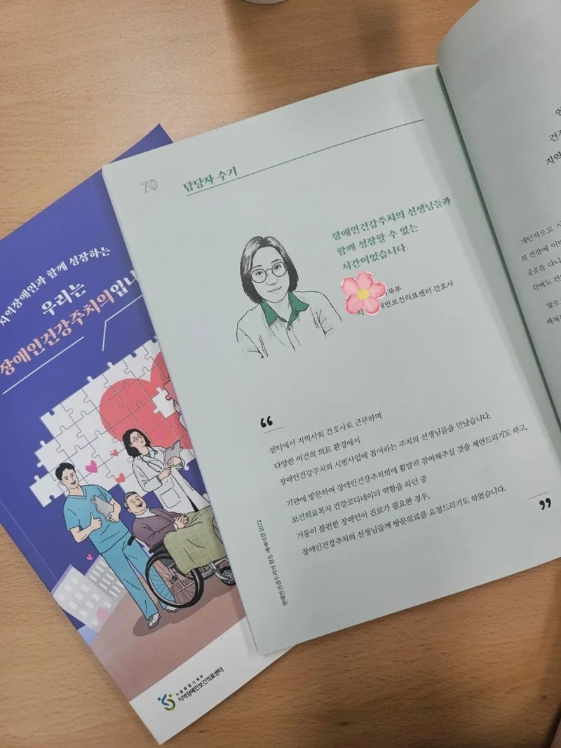 이든: 이야기를 나눌 수록 선생님께서, 그리고 지역장애인보건의료센터가 정말 사회에서 꼭 필요한 일을 하고 있다는 생각이 듭니다. 지금까지 경험을 바탕으로 지역사회간호사를 추천하는 이유가 있나요?
