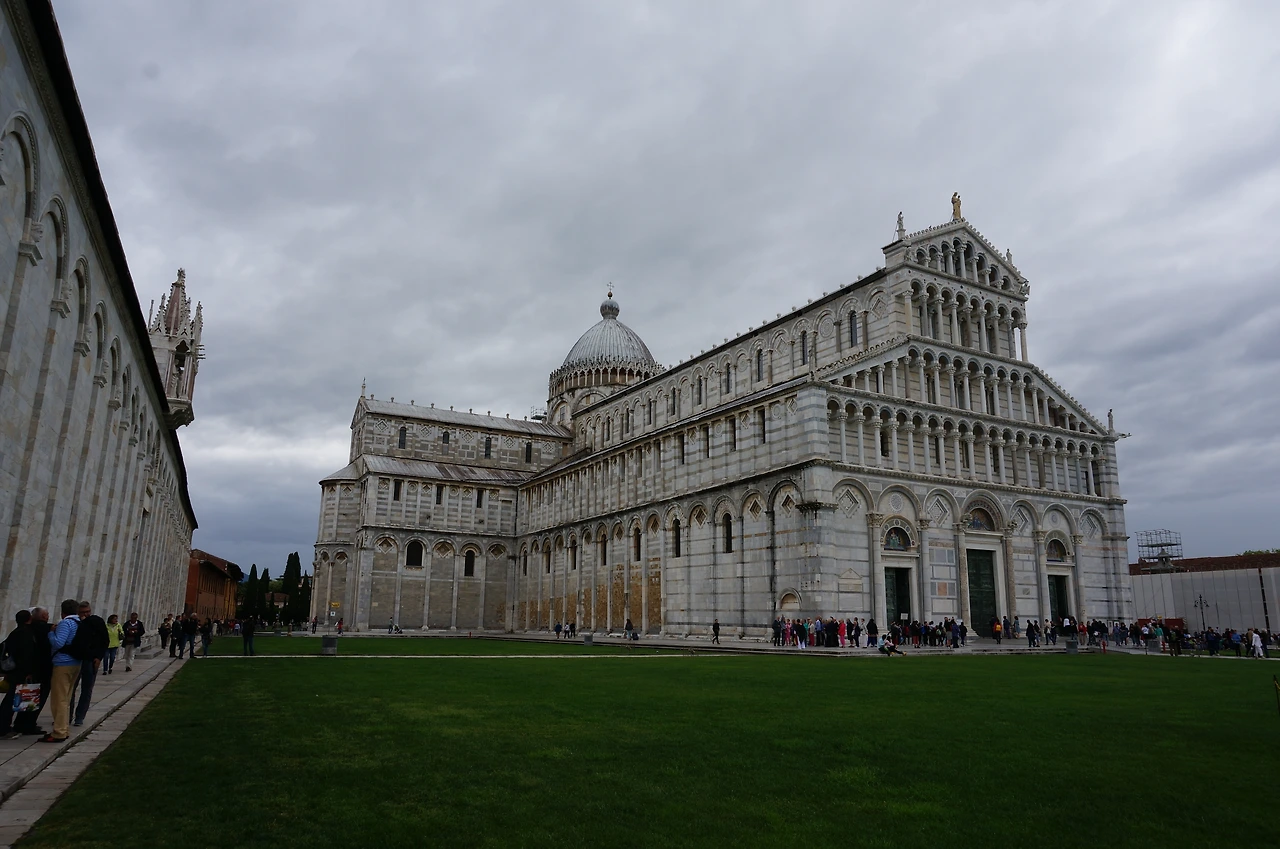 2. 대부분의 사람들이 사탑으로 직진하지만 광장에서 가장 큰 특징은 피사 대성당이다.