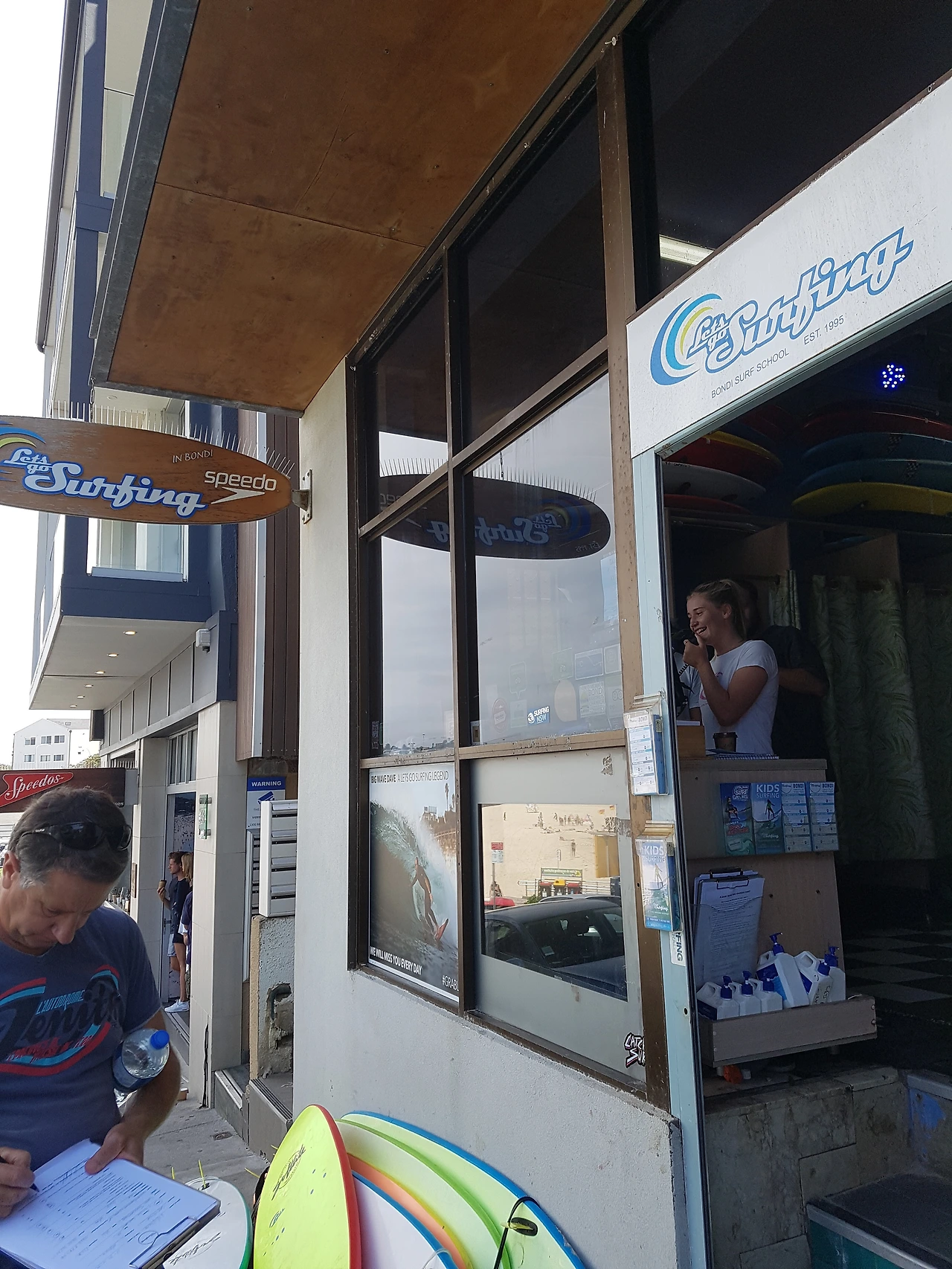 이곳에는 레츠고 서핑 Let's go Surfing이라는 서핑스쿨이 굳건히 자리 잡고 있다. 본다이 비치 끝쪽에 위치해있어 그곳에서 웻 슈트를 갈아입고 비치 어딘가에 보관되어 있는 서핑보드를 들고 바로 해변으로 나가면 된다.