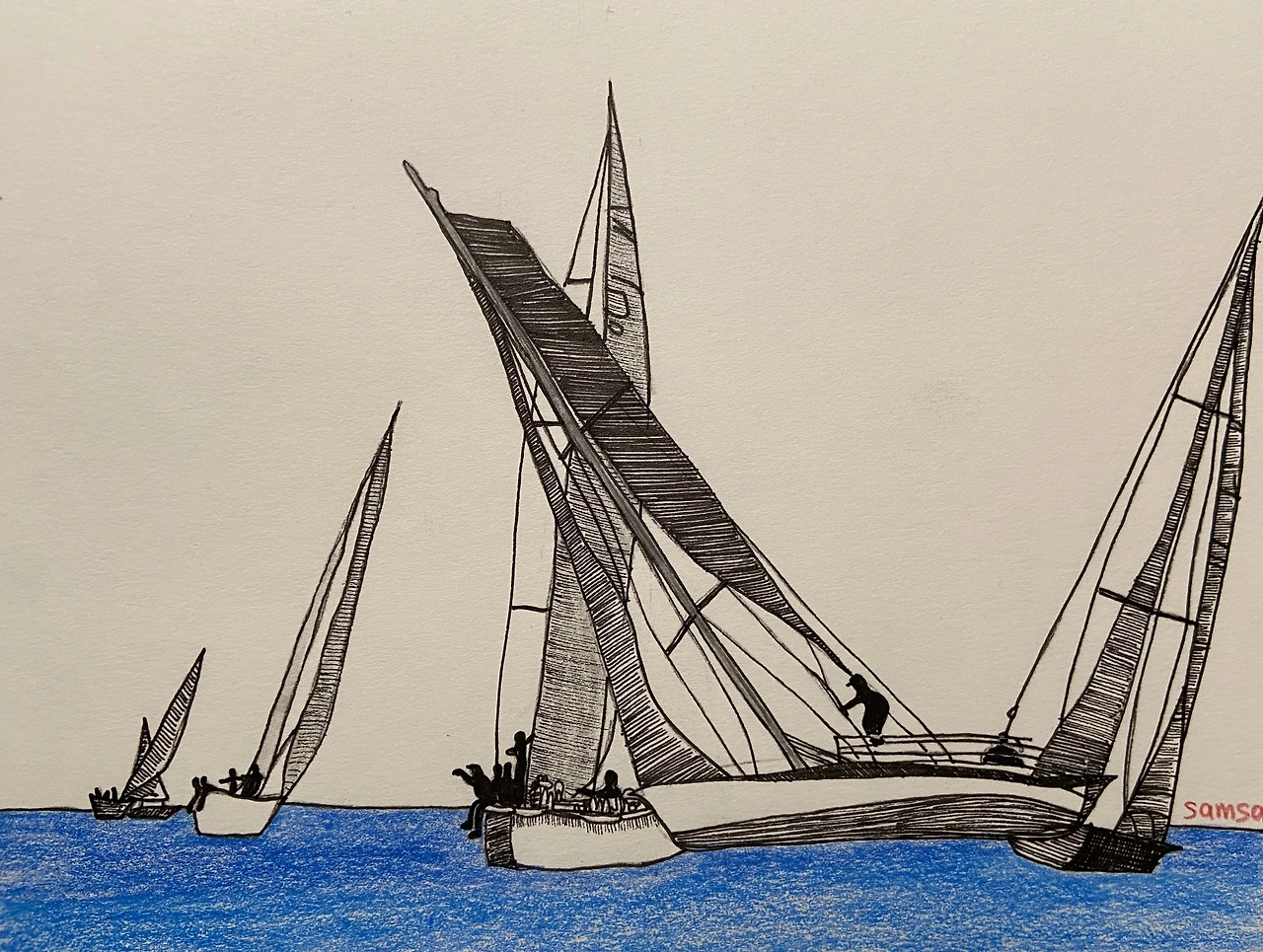 멋지긴 했는데 항상 단거리에서 마크를 여러 번 도는 레이스만 하다가 장거리를 달리는 것이, 그것도 바람을 읽고, 파도와 조류를 감안하고, 또 들이닥치는 바닷물을 온몸으로 맞아가며 세일링 하는 것이 쉽지만은 않았다. 더구나 이건 진짜 시합이고, 경기 깃발만 올라가면 평소에 그렇게 순하고 평온하던 사람들이 아드레날린을 폭발시키며 승부욕에 이글이글해지는 우리 팀 멤버들과 한 배에 타고 있지 않은가.