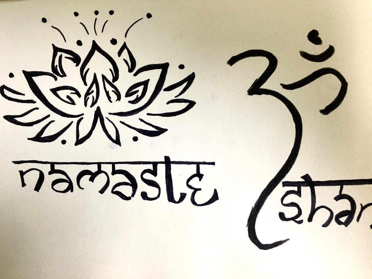요가를 하면서 ‘나마스떼’ 다음으로 많이 듣는 단어는 ‘옴’인데, 나마스떼처럼 가슴 앞에 양 손을 모으고 “오옴~~~~”이라는 소리를 한 번, 혹은 세 번 낸다. 그것을 ‘옴 찬팅’을 한다고 말한다. 영어 표기 그대로 ‘옴 OM’이라고도, ‘아움 AUM’이라고도 발음하는 옴이라는 단어 자체는 ‘전지, 전능’의 뜻을 지니며 그 소리를 우리는 우주의 소리라 여긴다. 우리는 모두 움직이고 변화하고 숨 쉬는 우주의 한 부분이기 때문에 우리가 ‘오옴~~’이라는 소리를 내면 그 진동에 편승할 수 있다고 한다. 선생님은 3번의 찬팅을 하는 이유에 대해 자신을 위한 한 번, 수련을 위한 한번, 우리 모두를 위한 한 번이라고 말씀하셨다. 요가원에 가면 볼 수 있는 붓으로 그린 검은색 글자, 가끔 요가 선생님의 몸에서 타투의 형상으로 발견되기도 하는 그 글자가 바로 옴이다.