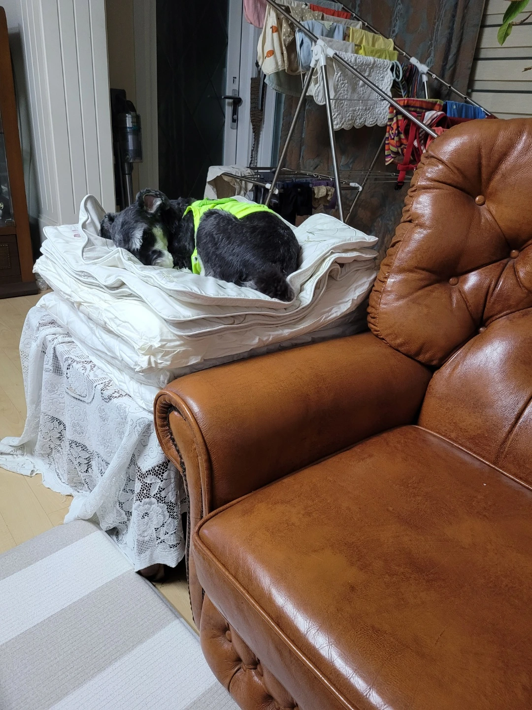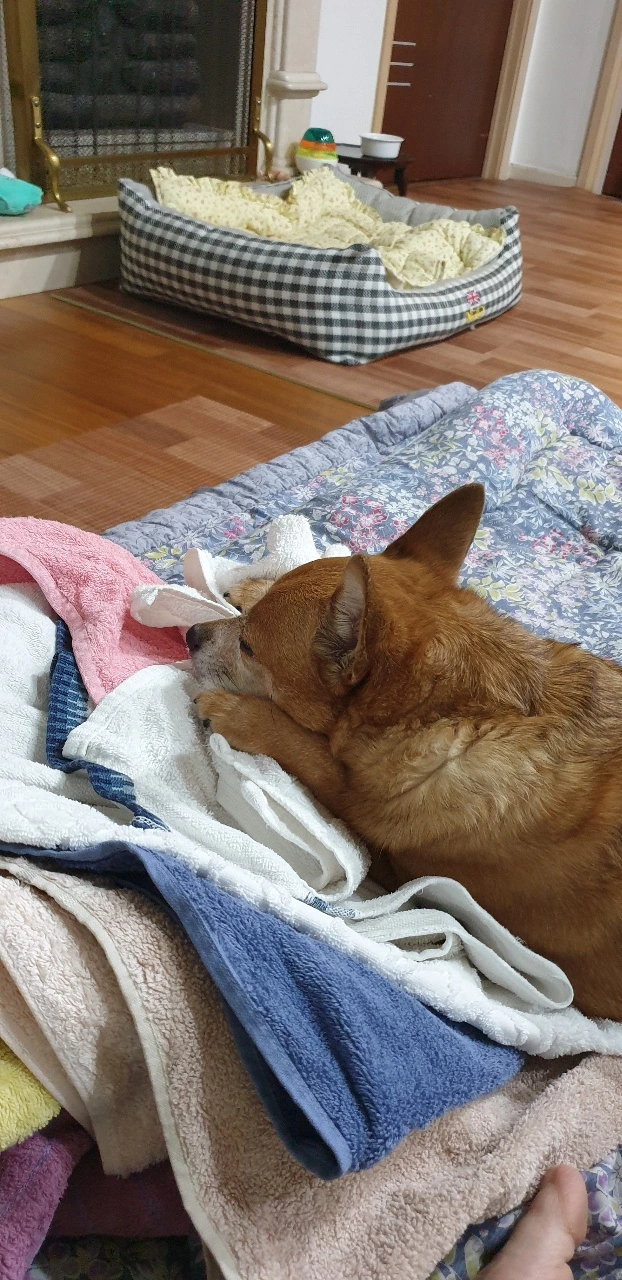 막 건조된 새 빨래 냄새가 조크등요~ 빨아놓은 옷에 강아지 냄새 뭍히기