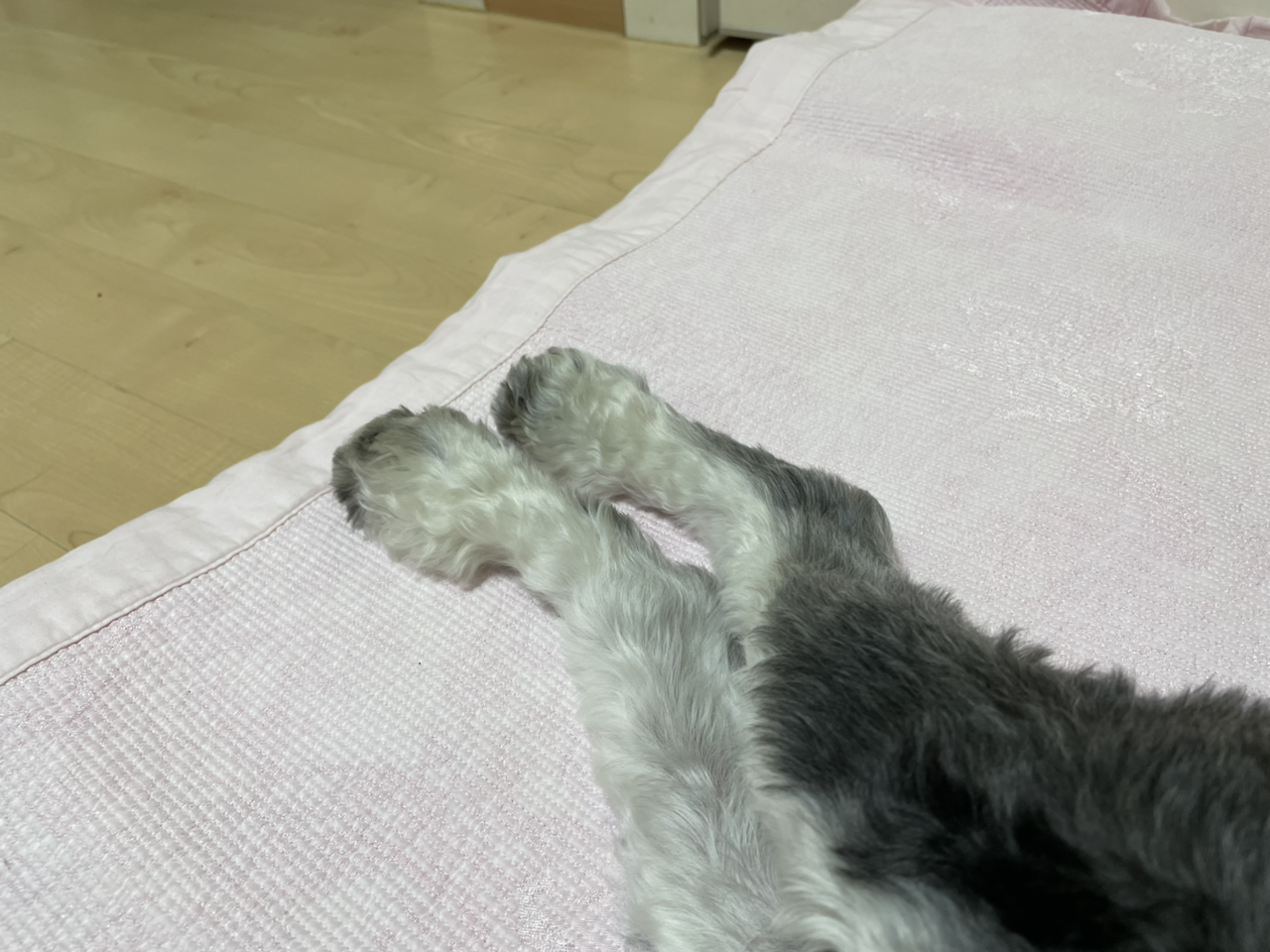 아팠던 슈렉이가 어떻게 나았는지는 정확히 기억이 나지 않는다. 다만, 3주인지 4주인지, 어쩌면 두 달인지 모를 시간 동안 병원에 입원해 있다가 돌아온 슈렉이가 굉장히 많이 커져서 돌아왔다는 것, 그래서 내 침대에 올라올 생각도 못했던 아기 강아지가 집에 돌아오던 날 점프를 하며 침대 위로 올라와 나를 놀라게 했다는 것만은 선명하게 기억이 난다. 외출복을 입은 채로는 침대 위에 앉지도 않던 결벽증의 나는 그 순간 모든 것을 놓아버렸다. 이 아이를 제대로 돌보지 않아서 홍역에 걸리게 했다는 죄책감, 아픈 아이를 내 손으로 만지는 것조차 꺼려했다는 미안함에 그동안의 모든 규율이 봉인 해제되었고, 이 침대는 슈렉이의 것이 되었다. 지금은 슈렉이와 몸을 맞대고 잘 잔다.