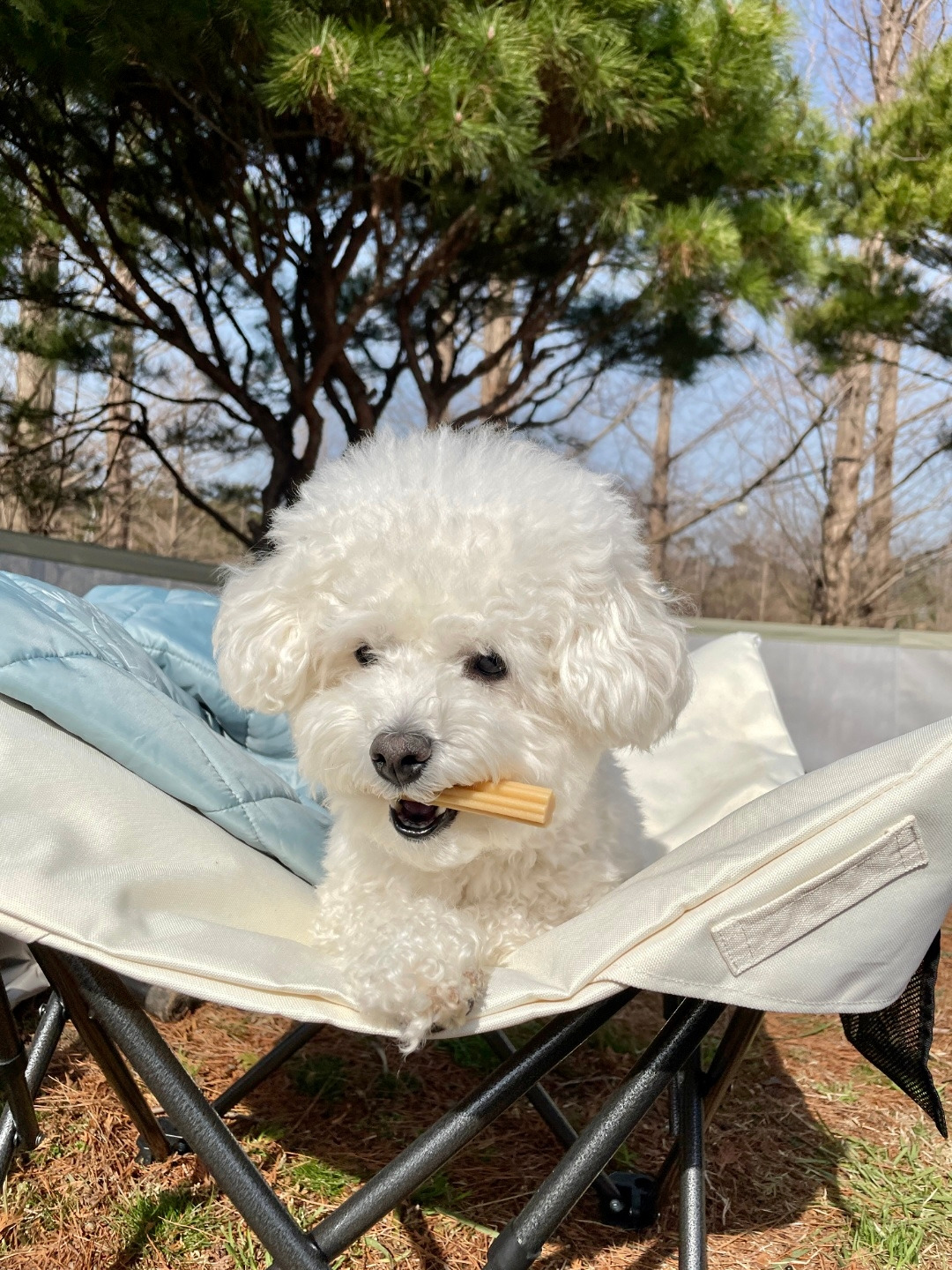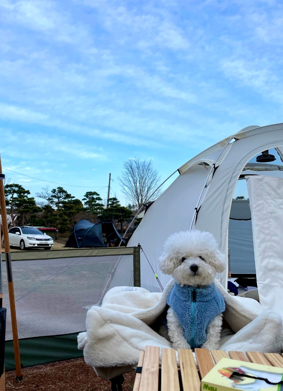 가을에 빼놓을 수 없는 활동으로는 캠핑이 있습니다. 가을이 오면 낮에는 선선, 밤에는 쌀쌀한, 그러니까 캠핑에 적합한 온도가 형성되고, 기온이 내려가며 벌레도 줄어듭니다. 봄철처럼 꽃가루가 날리지도 않아서 깨끗한 공기와 높고 맑은 하늘을 즐길 수 있습니다. 뿐만 아니라 조금 더 길어진 밤 덕분에 더 오래 불멍을 즐길 수도 있습니다. 캠핑장에 도착한 강아지들은 신기한 냄새투성이인 주변을 탐색하느라 정신이 없습니다. 이들의 행복한 표정을 본 사람이라면, 강아지들이 타고난 프로 캠핑러임을 확신할 수 있습니다.