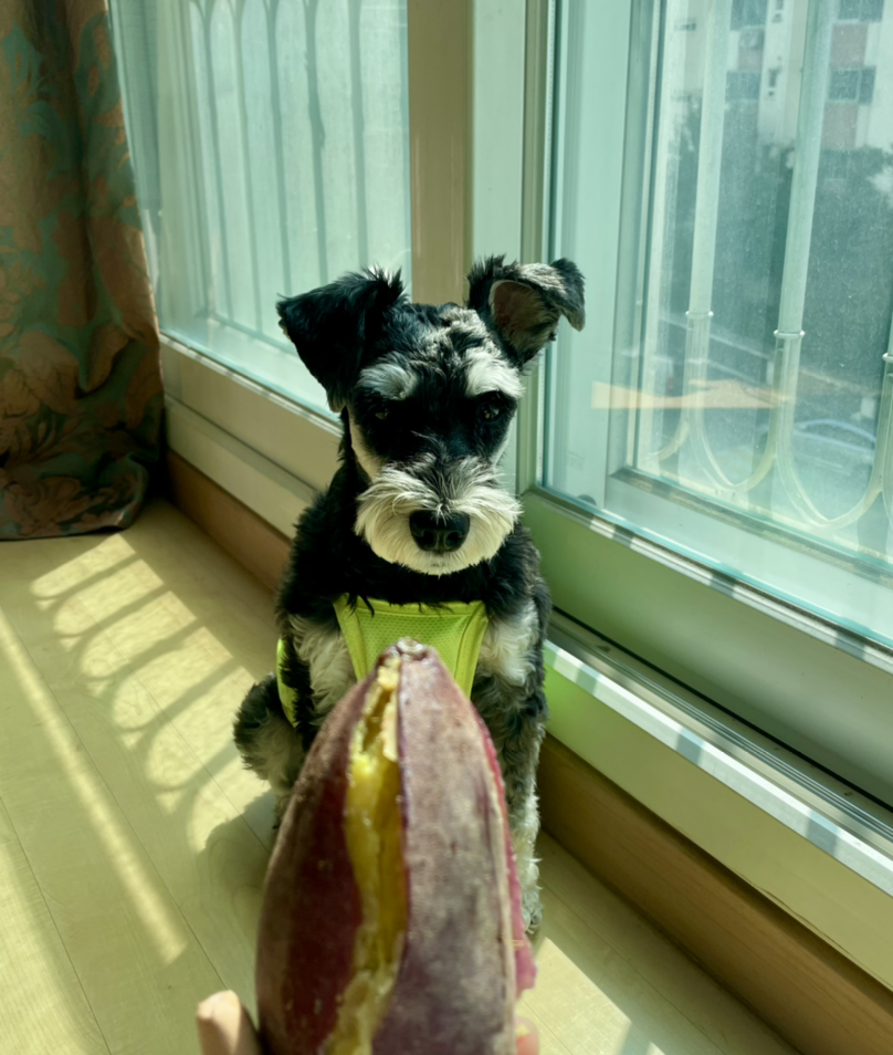 마지막으로 가을을 풍성하게 해주는 것은 바로, 모든 강아지들의 사랑을 독차지하고 있는 간식인 고구마입니다. 부드러운 식감에 달달한 맛까지, 엄마보다도 할머니보다도 우선순위에 오르는 강아지의 최애입니다. 요즘은 일 년 내내 고구마를 먹을 수 있지만 그래도 고구마의 제철은 가을입니다. 집에서 고구마를 찔 때면 귀신같이 부엌으로 달려와 얌전히 앉아 기다리는 식구가 저희 집에 하나 있습니다. 연륜 있는 슈렉이는 점잖게 앉아서 애처로운 눈빛을 보냅니다. 강아지에게 자꾸 간식을 주면 비만이 되고 관절에 안 좋다고 하지만, 이런 아이를 보고 어떻게 안 줄 수가 있겠습니까? 이렇게 나눠먹는 것이 다 행복이고 추억 아니겠어요?