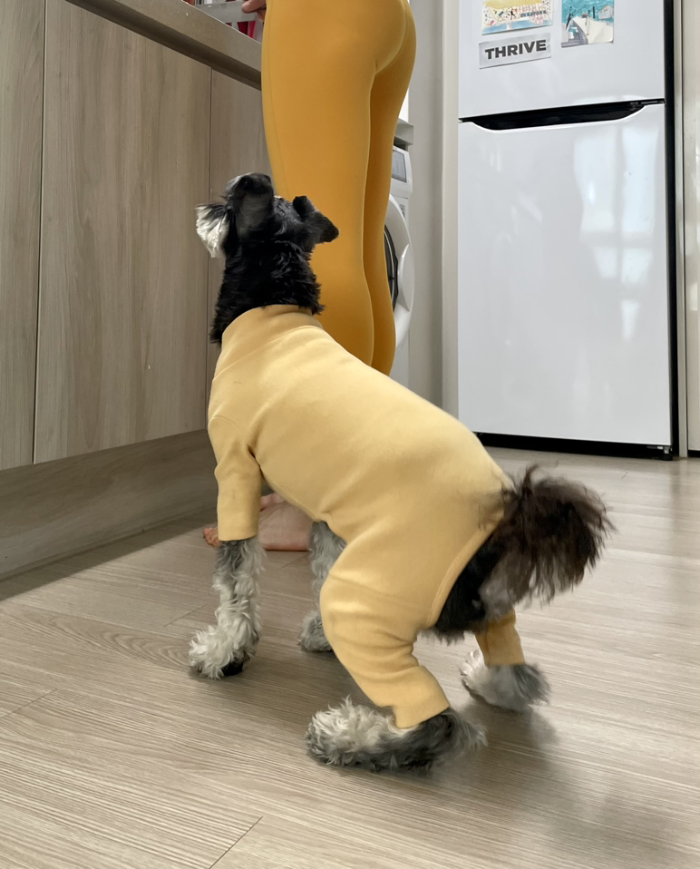 슈렉이도 매일 산책하는 우리 동네 큰 사거리에서 발생한 사고였다. 진도는 신호가 바뀌자 신나서 횡단보도를 뛰어나갔고, 때마침 신호를 위반한 자동차가 씽 달리며 진도를 친 것이다. 진도가 1살도 채 되지 않았을 때의 일이다. 수술을 3번이나 했는데도 소용이 없었다고 한다. 사고를 당한 오른쪽 앞다리는 왼다리 길이의 2/3도 되지 않아 바닥에 닿지 않았다. 사고 이후 자라지 않은 것처럼 보였다. 아무래도 근육이나 신경이 끊어진 것 같다. 어깨를 빙 둘러 다친 다리를 붕대로 지지해 놓았는데 그마저도 없으면 덜렁거리는 다리가 움직일 때마다 사방으로 휘날릴 것처럼 보였다.