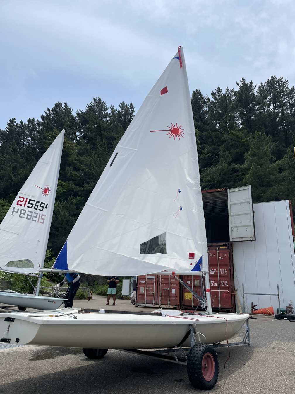나는 작년 레이저챔피언십 레디얼(ILCA6) 3등 수상자이다. 하지만 개인요트는 없다. 작년에는 대회 측에서 요트를 빌릴 수가 있었는데, 올해는 차터를 운영하지 않는다고 했다. 요트도 없고 아는 사람도 없는 나로서는 당연히 대회 신청을 하지 않고 있었다. 작년 양양대회 이후로 딩기요트를 단 한 번도 타지 않았던 터라 꼭 가야 한다는 생각도 없었다. 요트학교에 딩기요트가 몇 대 있기는 하지만 여자가 타는 ILCA6, 레디얼 세일은 부족하다. 여자 요트인구가 많지 않으니 구비되어 있지 않은 것이다. 그래서 대회에 대한 생각은 하고 있지 않았는데, 여러 분들의 도움으로 세일과 요트를 구해서 양양에 함께 가게 되었다.