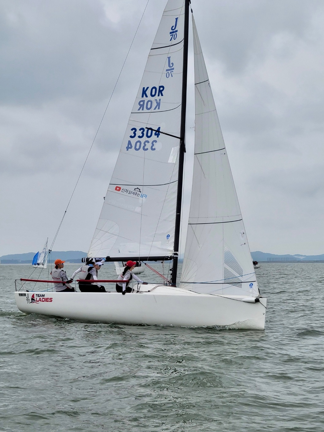 그나마 다행인 것은, 어마어마한 강풍이라던 예보가 틀려 요트를 타기에 적당한 4~9m/s의 바람이 불어와 줬다는 것이다. 대회 첫째 날인 토요일만 해도 9~15m/s 의 바람이 불었다. 아무래도 체중이 적게 나가는 우리 팀은 바람이 세면 요트를 컨트롤하는데 어려움을 겪을 수밖에 없기 때문이다.