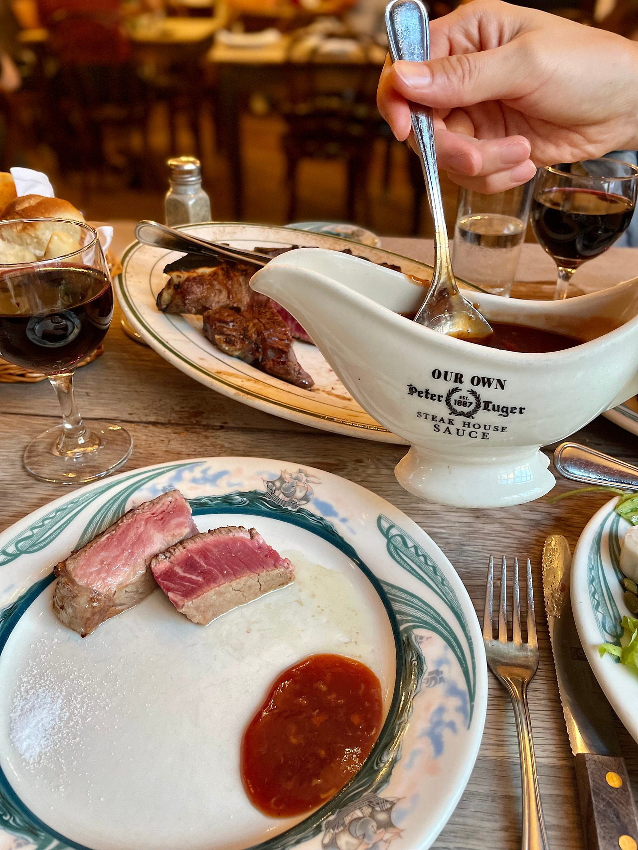 뉴욕의 3대 스테이크 맛집이라는 브루클린의 피터루거 스테이크에 갔을 때이다. 예약 없이는 갈 수 없는 곳이라 알려져 있는 데다가 주말 예약은 더 힘들 테니, 예약 오픈일에 맞춰 예약을 성공했다. 그런데 시간에 맞춰 갔음에도 불구하고 자리까지 안내되는데 30분 이상은 기다렸던 것 같다. 다들 바에서 대기하면서 아무렇지도 않게 와인이나 칵테일을 한 손에 들고 대화를 하고 있는 것으로 보아, 미국 사람들에게는 익숙한 상황인 것 같았다. 예약한 시간 정각에 못 들어가는 상황을 이해할 수 없다며 몇 번이고 언제 들어갈 수 있냐고 묻는 사람은 나뿐이었다.