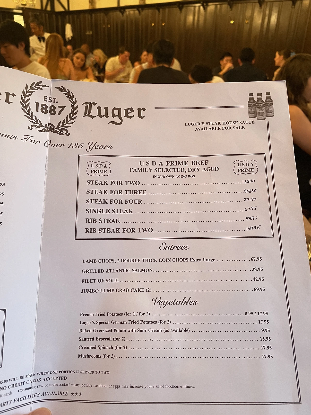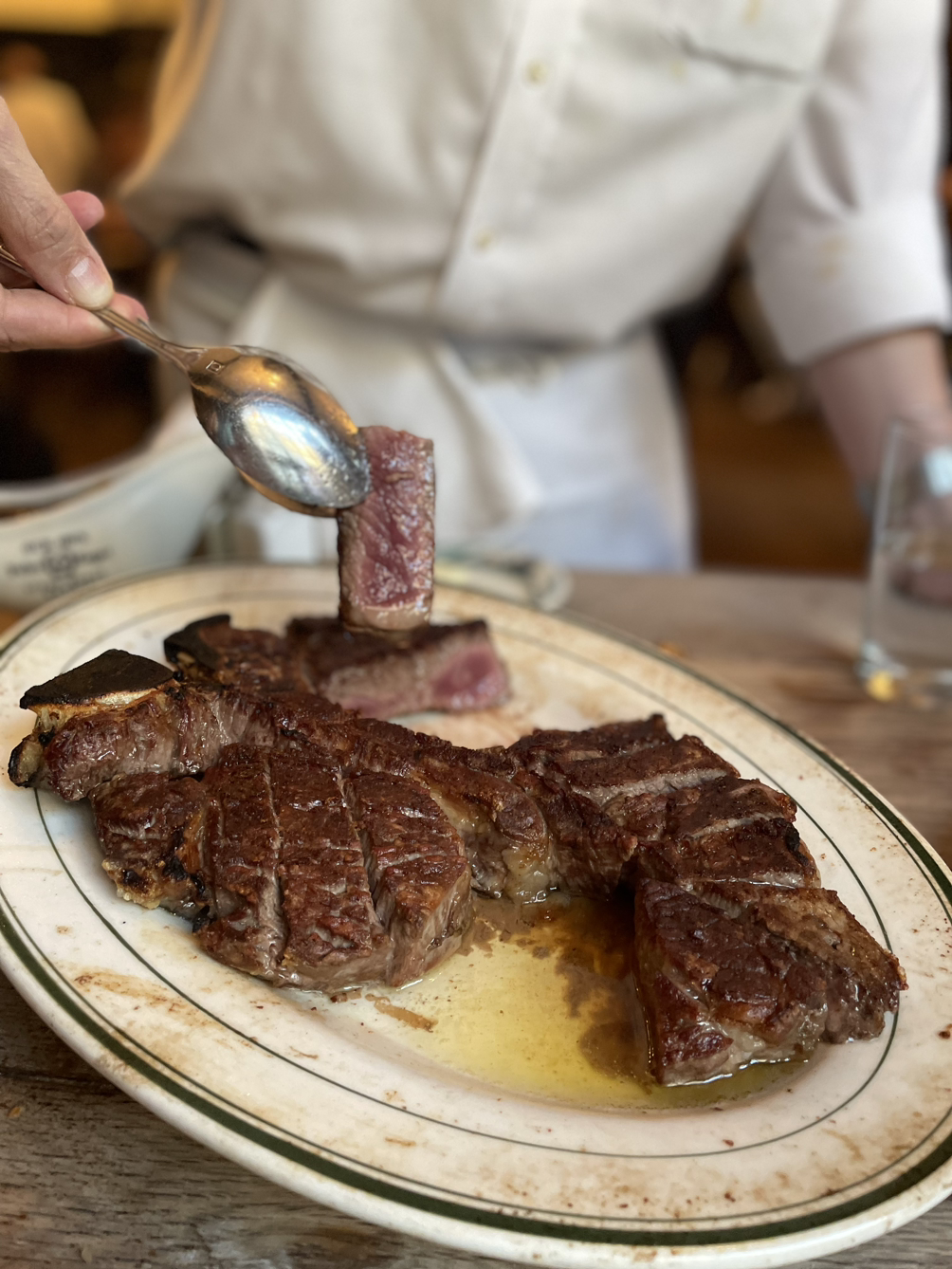 스테이크 전문점이라 메뉴가 Steak for 2, Steak for 3, Steak for 4 로만 구분되어 있었다. 우리는 2인용 스테이크를 주문했지만 내 기준으로 4인용 스테이크가 나왔다. 양이 너무 많아서 다른 사이드 메뉴를 시킬 생각은 차마 못 하고 샐러드를 시켜서 양껏 야채를 먹었다. (샐러드도 사이즈가 크다.) 고기 전문가인 남자친구가 매우 훌륭하다고 평가를 했고, 육식을 즐겨하지 않는 나도 평소보다 많이, 맛있게 먹었다. 과연 130년 전통의 스테이크 맛집이었다.