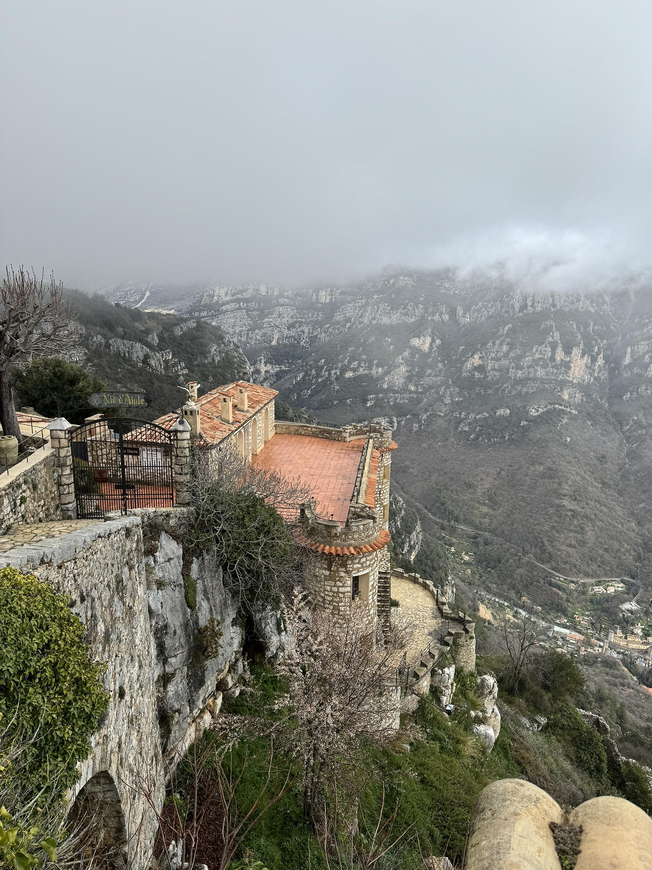 반면, 마을 자체는 아기자기하다. 비누, 유리공예, 보석, 향수 등을 판매하는 작고 귀여운 부띠끄들과 소박한 성당을 둘러보며 한 바퀴 걷고 나면 그게 전부이다. 소박한 성빈센트 성당 Eglise Saint-Vincent de Gourdon 을 간단히 돌아보고 나면 바로 옆에는 La Taverne Provencale이라는 레스토랑이 있다. (테라스 파라솔에 가려서 성당이 잘 안보입니다….) 이곳 테라스에 앉으면 멋진 파노라마뷰를 즐기며 식사를 할 수 있다. 비 오는 날 방문한 우리는 그러지 못했지만…… 남프랑스는 1년에 300일이 맑다고 하던데, 하필 오늘은 그 300일에 속하는 날이 아니었다. 하지만 이곳에서 프랑스 여행 내내 먹었던 것 중 최고의 바게트를 먹었다. 갓 구워낸 뜨거운 바게트가 헝겊 바구니에 무심히 담겨 나오는데, 와, 이건 알아주는 빵순이인 내가 처음 먹어보는 클래스의 바게트이다. (바게트가 이정도이니 요리는 말할 필요 없겠죠?)