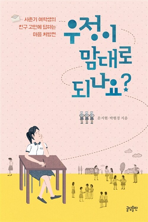 이 책의 문지현 저자는 정신건강의학과 전문의입니다. 저자는 자신의 전문성을 살려 친구 문제로 고민하는 가상의 사춘기 여학생들을 설정했어요. 그리고 그들의 고민을 듣고 답장을 보내는 형식으로 이 책을 구성했습니다. 저자가 설정한 가상의 인물은 누구에게나 칭찬받는 모범생, 활달한 성격이지만 뚱뚱한 몸매가 콤플렉스인 아이, 성격이 까칠한 아이, 우유부단한 아이, 친구들에게 따돌림당하는 아이입니다. 이들의 고민은 각각 질투와 시기심, 열등감, 경쟁심과 좌절감, 외로움, 애착과 불안인데요. 이 책을 통해 이러한 감정이 친구 관계에서 어떤 문제를 일으키는지, 그에 대한 해결책은 무엇인지 알 수 있습니다.