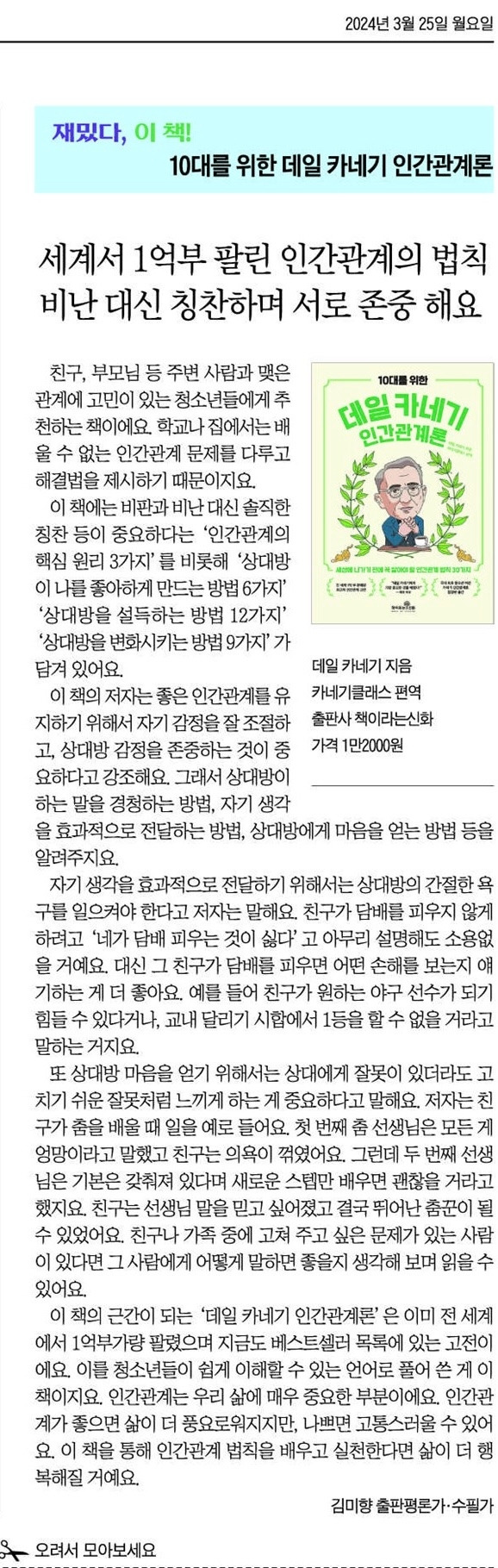 2024년 3월 25일(월) <조선일보> - 신문은 선생님 '재밌다, 이 책!' 코너에 게재된 원고입니다.