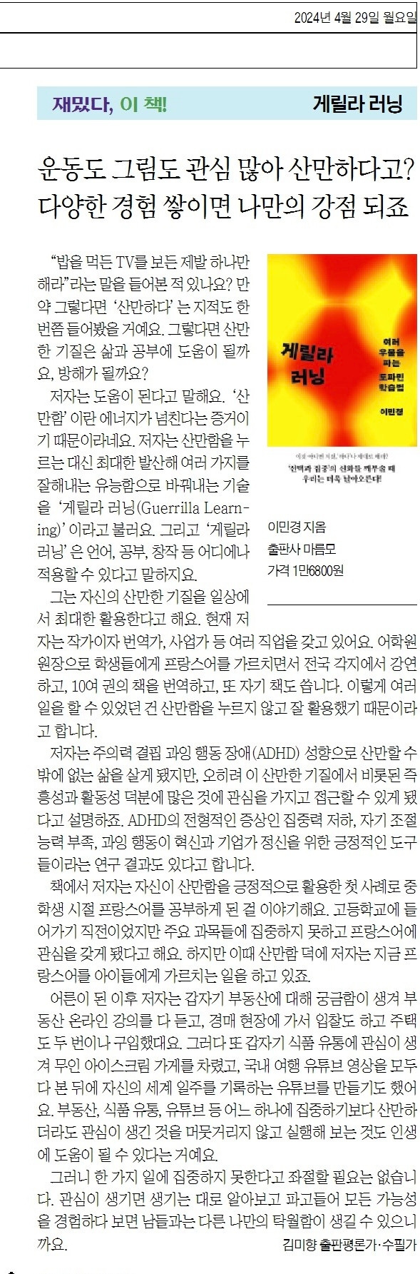 2024년 4월 29일(월) <조선일보> '재밌다, 이 책!' 코너에 게재된 원고입니다