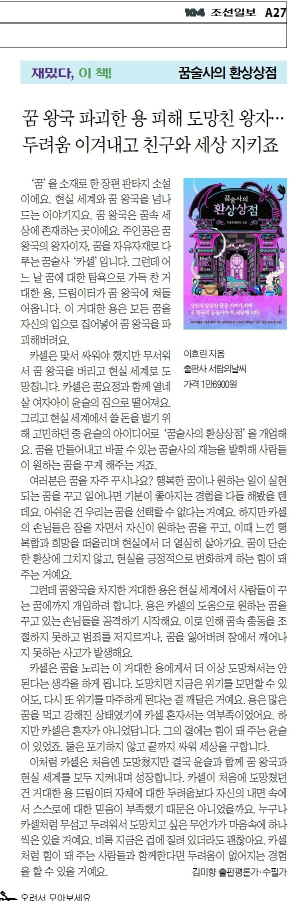 2024년 5월 27일(월) <조선일보> '재밌다, 이 책!' 코너에 게재된 원고입니다